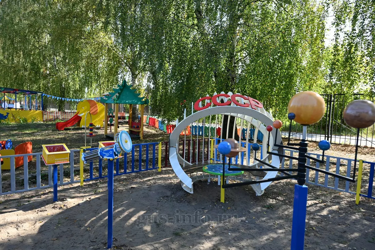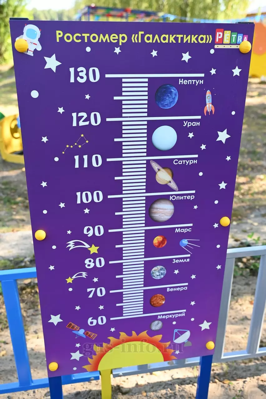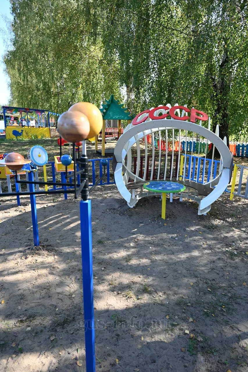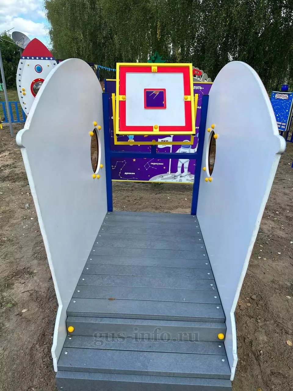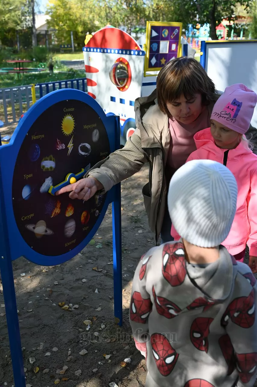 Интерактивная площадка направлена на развитие уличного пространства детского сада, который обслуживает более 250 детей. Она представляет собой комплекс, в состав которого входят красочные стенды и макеты. С их помощью дошкольники осваивают азы астрономии и получают представление о космическом пространстве.