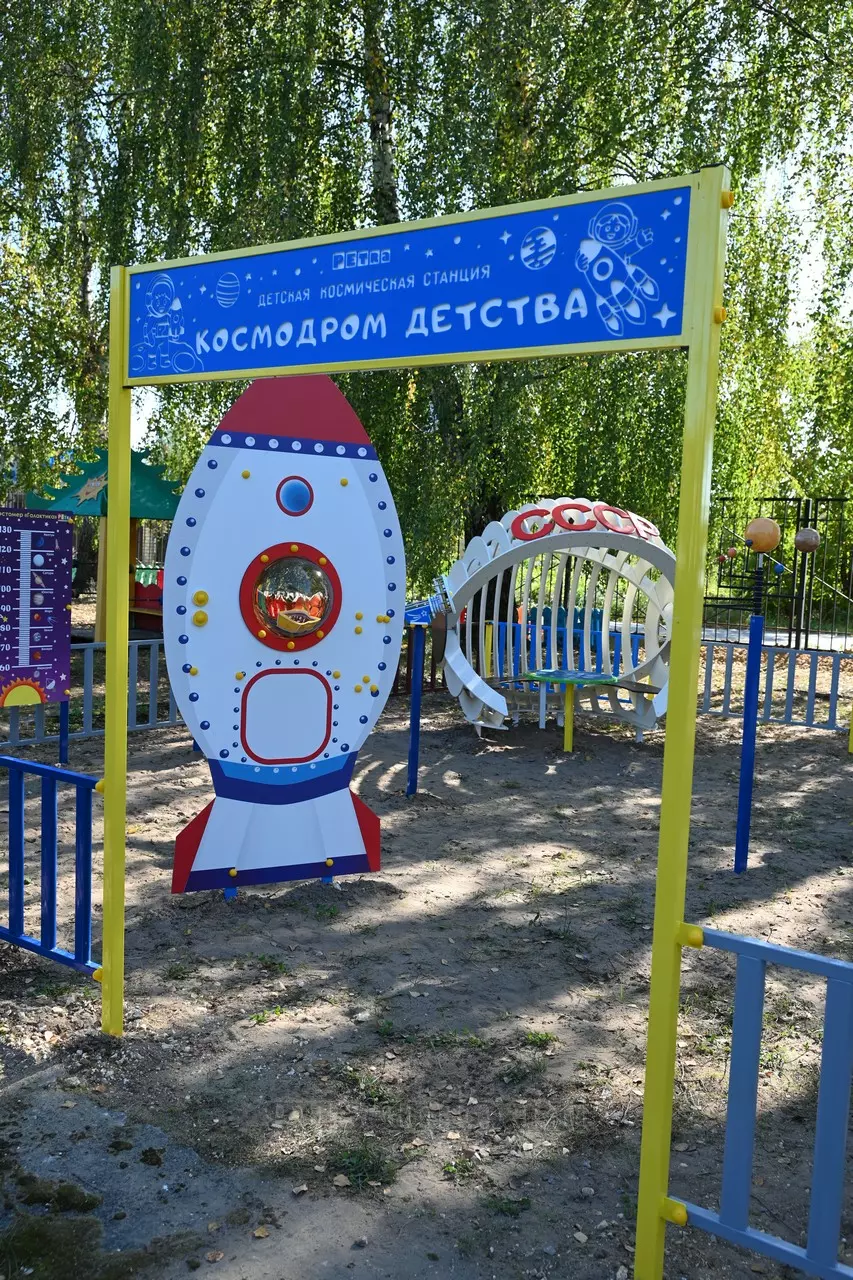 На «Космодроме детства» есть летающая тарелка, которая будоражит воображение и зовет воспитанников в неизведанные галактики, а также вместительный луноход, вызывающий неподдельный интерес у подрастающего поколения.