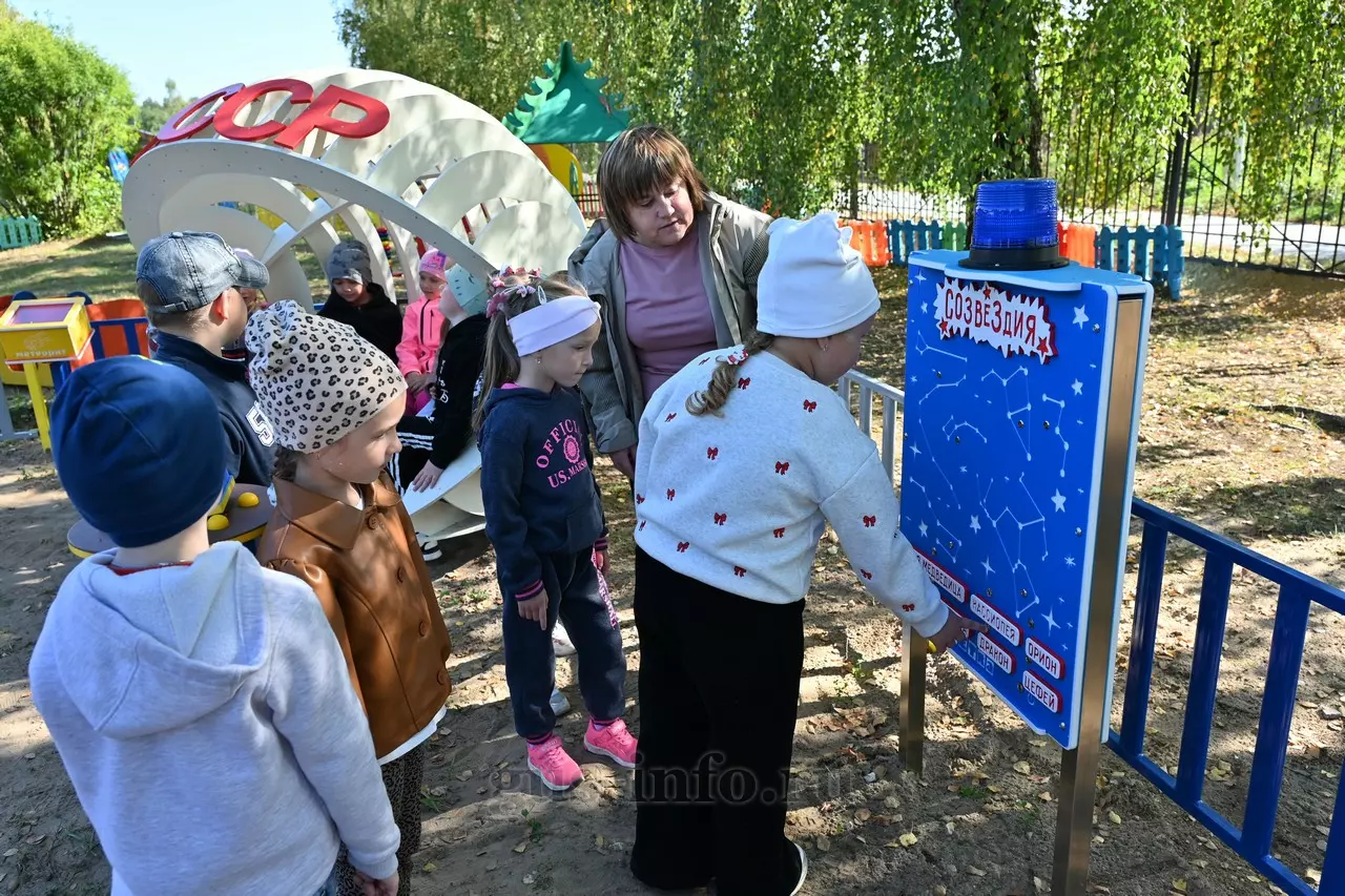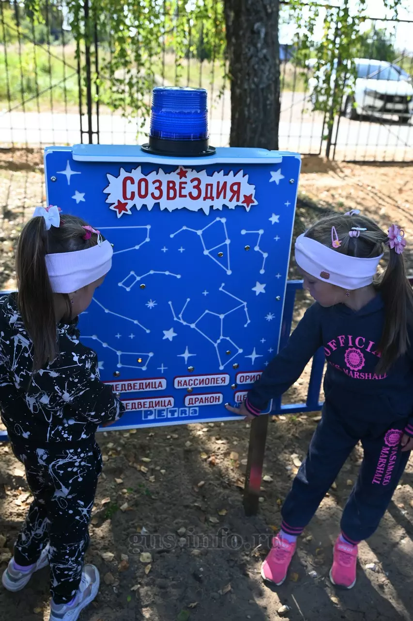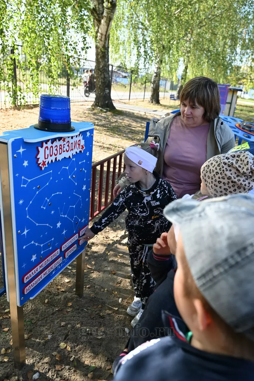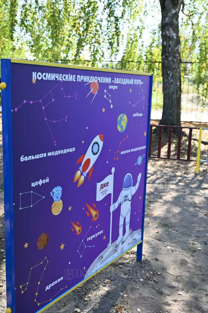 С удовольствием юные жители поселка изучают созвездия. Несколько стендов посвящены этой теме, и на одном из них дети могут закрепить свои знания, нажимая на кнопки. При правильном ответе на информационном щите зажигается лампочка.