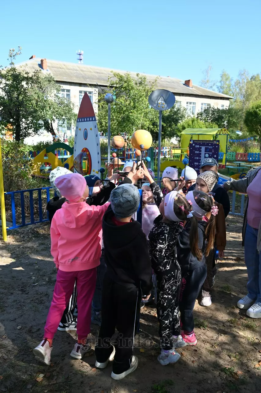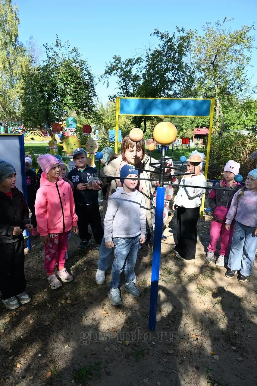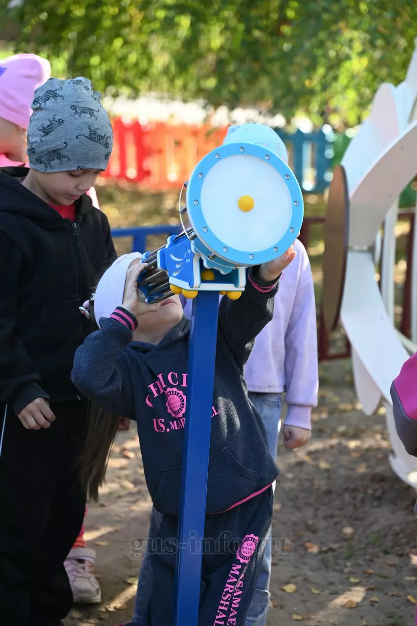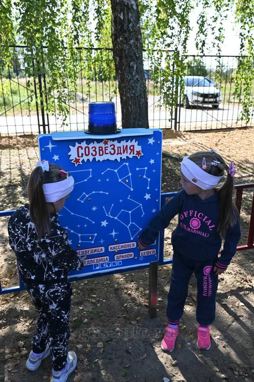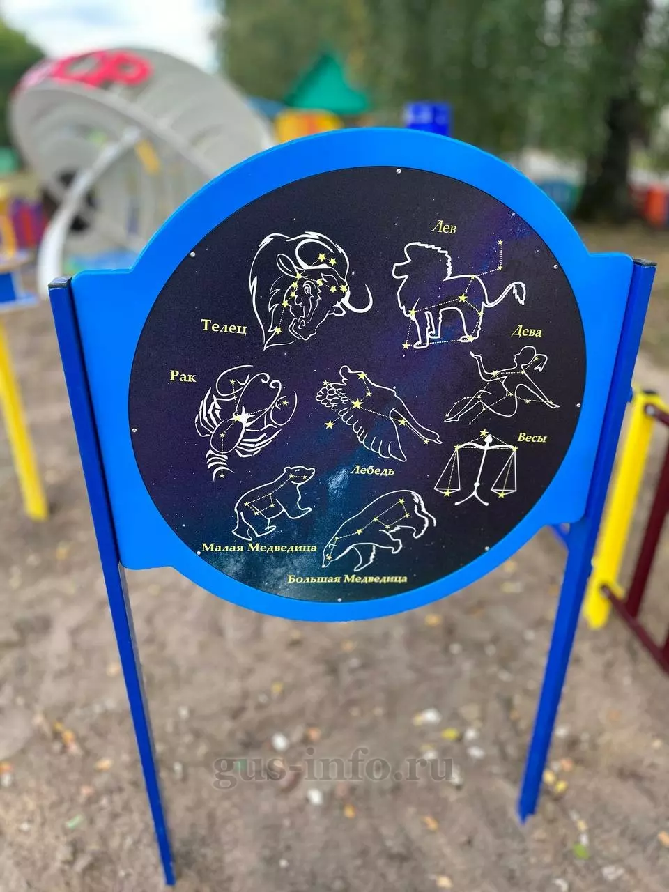 С удовольствием юные жители поселка изучают созвездия. Несколько стендов посвящены этой теме, и на одном из них дети могут закрепить свои знания, нажимая на кнопки. При правильном ответе на информационном щите зажигается лампочка.