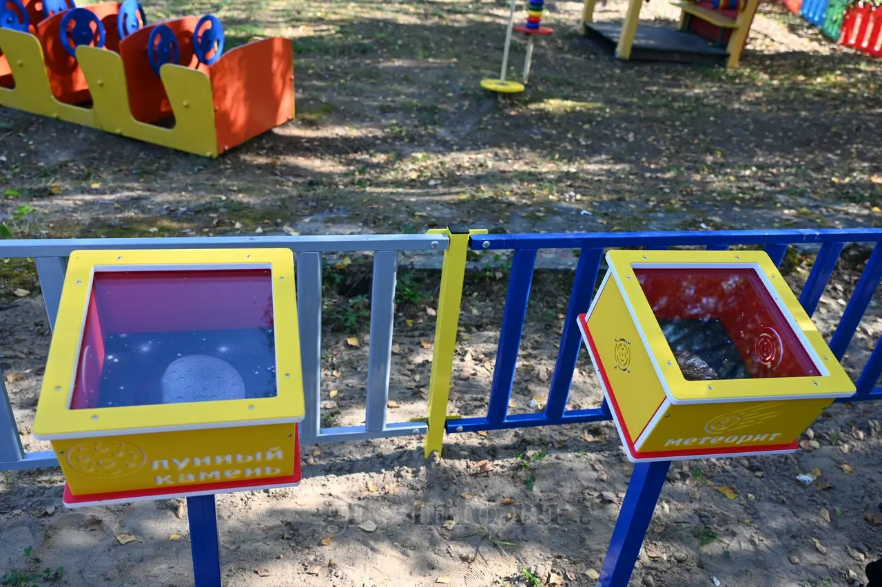 На территории образовательного пространства также установлены стенд с метеоритом и лунным камнем, уютная беседка в виде гермошлема космонавта. А еще здесь можно поймать сигнал из космоса.