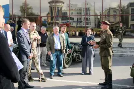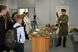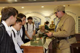 В тот же день бойцы побывали на фестивале «Вклад земли Владимирской в Великую Победу», посвящённом 80-летию Победы советского народа в Великой Отечественной войне и приуроченном ко Дню оружейника. Его проводит Владимирская региональная общественная организация патриотического воспитания граждан «Наследники Победы» при поддержке Министерства внутренней политики. Фестиваль главным образом адресован ученикам средних и старших классов, которым в ходе мероприятия не только рассказали о великих оружейниках, работавших на Владимирской земле, но и показали оружие, с которым их прадеды завоевали Победу над фашизмом, современные средства вооружённой борьбы. А на автостоянке перед зданием молодые люди увидели боевую технику Красной Армии. За два дня на фестивале побывали более 1000 школьников.