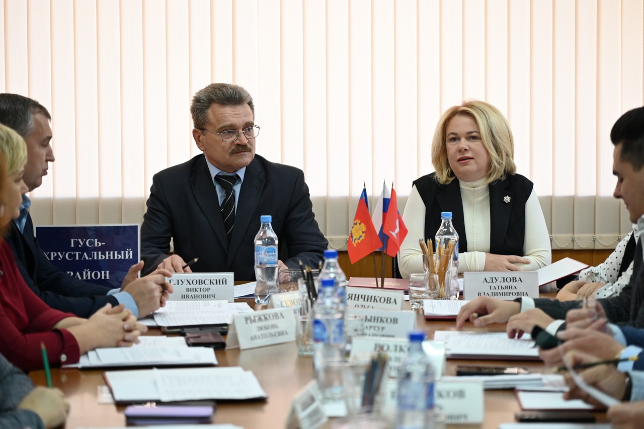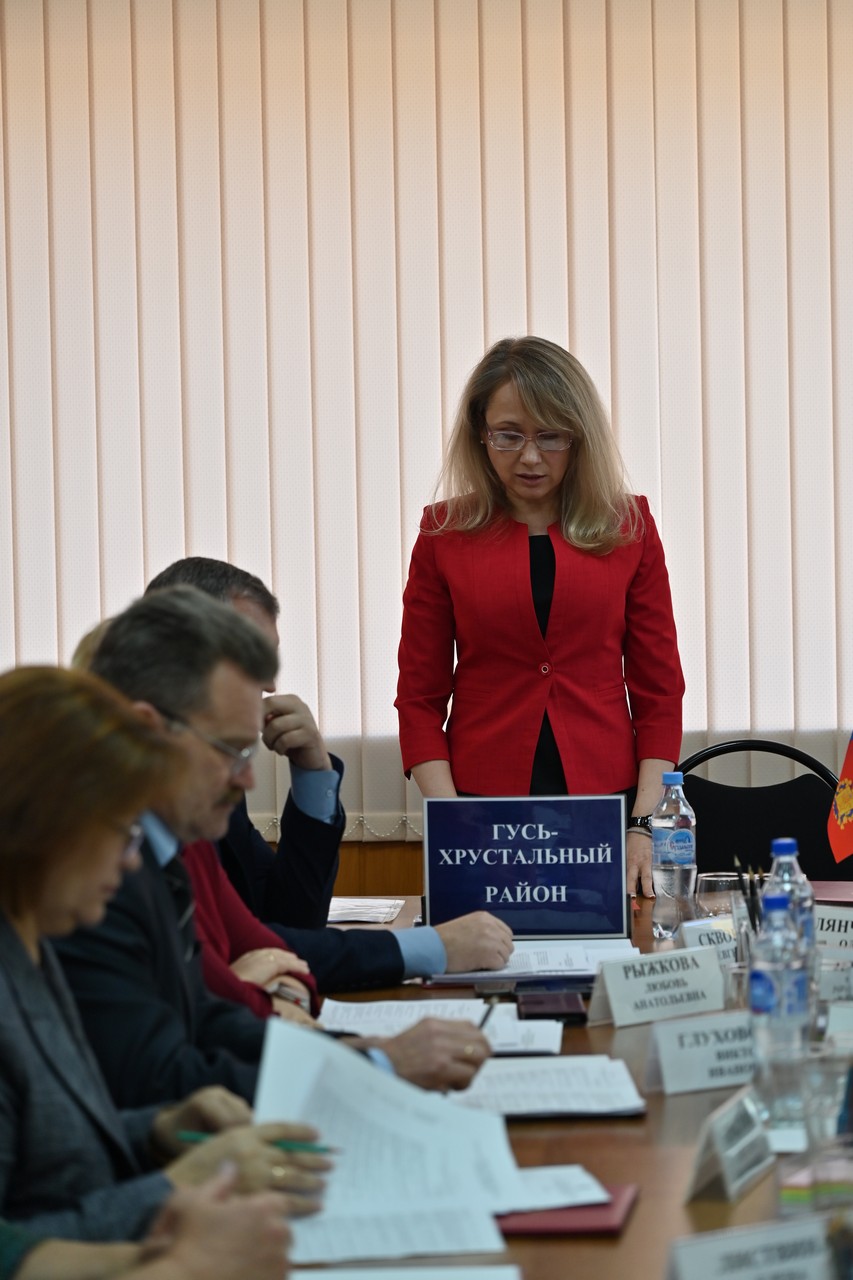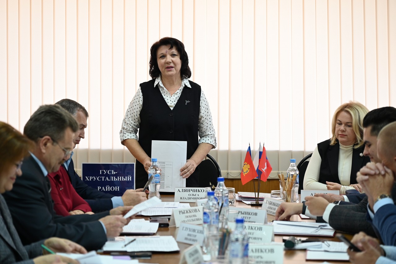 В начале заседания Татьяна Адулова ознакомила участников Совета с указом губернатора Владимирской области о назначении Алексея Кабенкина временно исполняющим полномочия главы Гусь-Хрустального муниципального округа.
