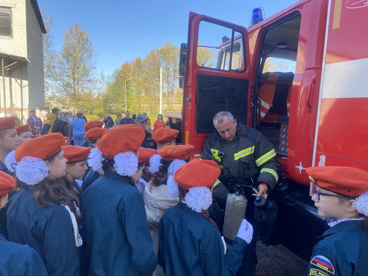Закончилось мероприятие знакомством с пожарной машиной, снаряжением, находящимся внутри нее, инструментами, используемыми во время аварийно – спасательных работ. Кадеты с удовольствием слушали рассказы сотрудников МЧС ПЧ № 30 г. Курлово, задавали вопросы и пообещали в скором времени прийти на экскурсию в пожарную часть.