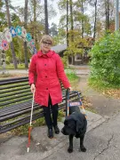 На сегодняшний день региональное Отделение обеспечило собаками - проводниками четырех жителей Владимирской области с нарушениями зрения. Все они живут в Коврове и в этом году объединились в клуб владельцев собак – проводников «Компас». С руководителем клуба Ольгой Владимировной Павленко мы встретились накануне Дня белой трости. Ольга очень жизнерадостный человек, ведет активный образ жизни, состоит в волонтерской группе «МаскСети33», участвует в паратурслетах и различных региональных мероприятиях. Сейчас ее везде сопровождает лабрадор по кличке Сонни.