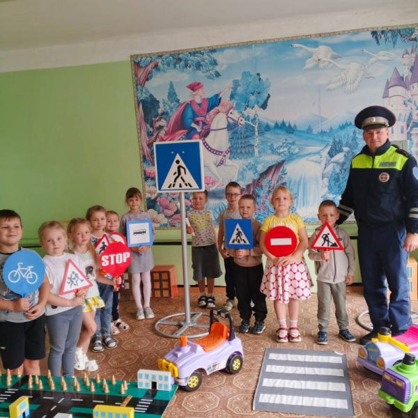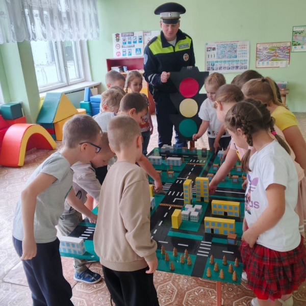 Дорожный полицейский в игровой форме рассказал ребятам об основных правилах безопасного поведения на дороге: напомнил о недопустимости игр около проезжей части, необходимости крепко держать за руку взрослого при переходе дороги, важности перехода проезжей части только в установленных местах, а также о том, что означают сигналы светофора.