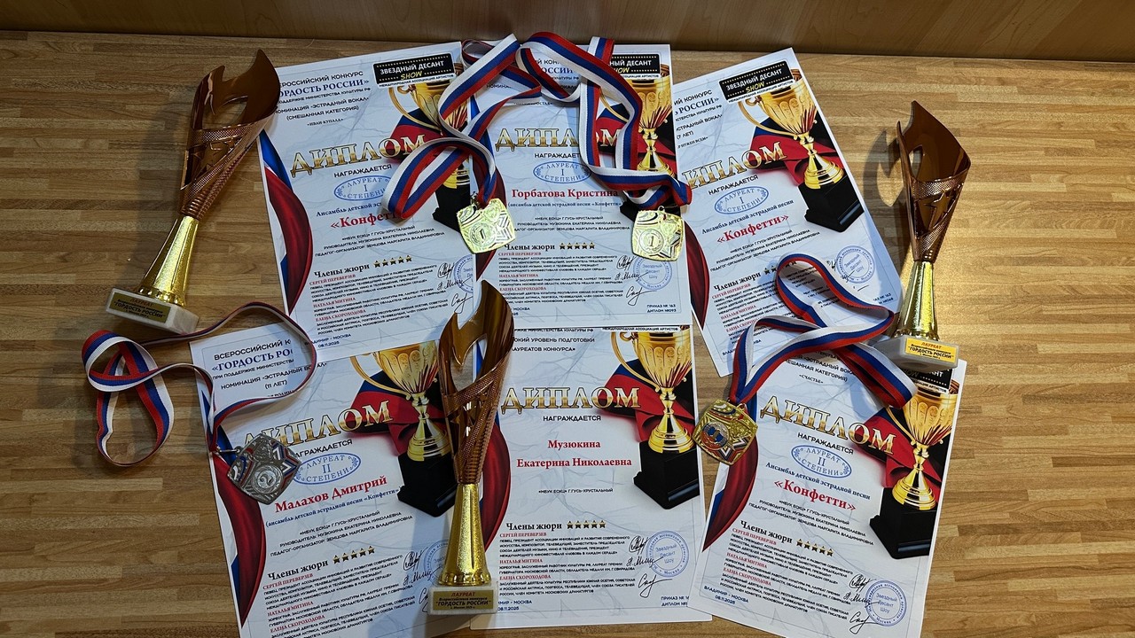 Воспитанники детской вокальной гр-пы «КОНФЕТТИ» и руководители хормейстер Е.Н. Музюкина; режиссер М.В. Земцова МБУК «Ескц» не упустили такой прекрасной возможности, и в очередной раз продемонстрировали и испытали свои творческие способности во Всероссийском конкурсе-фестивале «ГОРДОСТЬ РОССИИ - 2025».