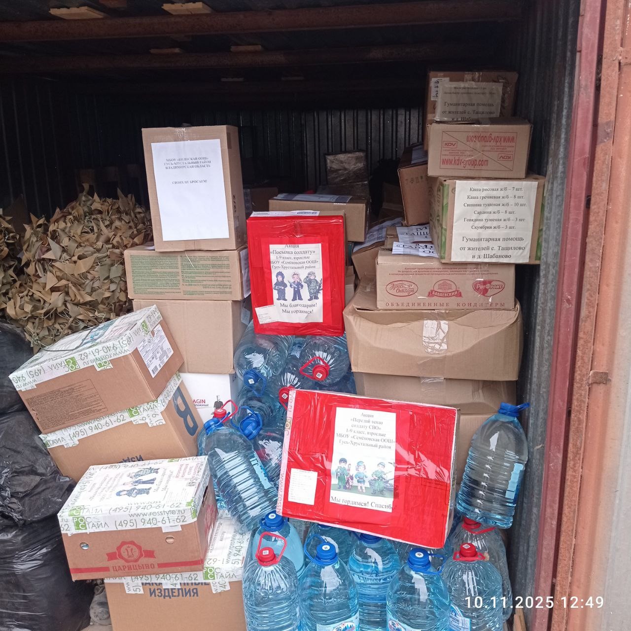 Из администрации Гусь-Хрустального района в зону специальной военной операции отправлен очередной груз с помощью для наших бойцов. Этот гуманитарный рейс включил в себя важные предметы и оборудование, необходимые для обеспечения комфортных условий службы и поддержки военнослужащих.