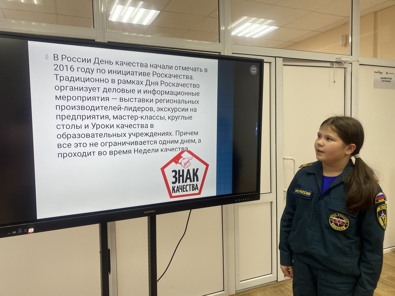 В рамках всероссийской недели качества кадеты Курловской средней школы провели внеклассное занятие «Вместе за высокое качество». Учащиеся познакомились не только с историей понятия «качества», но и с деятельностью институтов качества в России и мире. Ребята узнали, что в царской России существовало почётное звание «Поставщик Двора Его Императорского Величества», которое получали купцы, поставляющие на регулярной основе товары ко двору. На смену знаку Поставщика пришли советские ГОСТы. 20 апреля 1967 года был утверждён Знак качества. Тогда он назывался Государственным знаком качества СССР и был введён, чтобы стимулировать рост качества товаров. В 2015 году правительство России по инициативе Минпромторга учредило национальный институт качества и потребительского информирования – Российскую систему качества (Роскачество), возродив тем самым систему мониторинга товаров, услуг и государственный Знак качества, который получают лучшие товары. Ребята узнали, что производители товаров могут бесплатно пройти сертификацию и получить Знак качества, который выдаётся на 3 года.