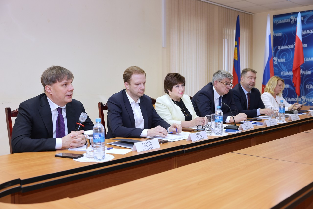 Глава Суздальского района Алексей Сараев на правах принимающей стороны представил доклад о социально-экономическом развитии территории. Он отметил, что район находится на стадии реформирования, и в Законодательное Собрание уже подана инициатива Совета народных депутатов о реорганизации Суздальского района в городской округ Суздаль и Суздальский муниципальный округ. В последнее время в территории наблюдается рост промышленного сектора. Вместе с тем существуют определённые ограничения туристической ёмкости города Суздаля, что порой негативно влияет на комфорт как местных жителей, так и приезжих.