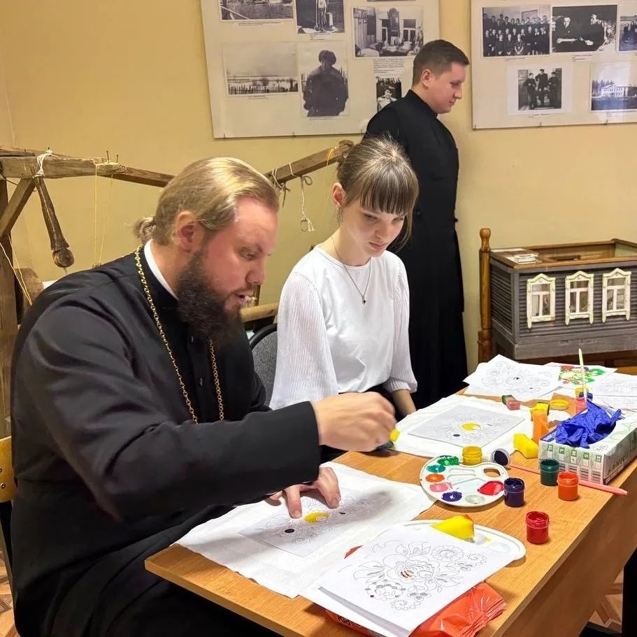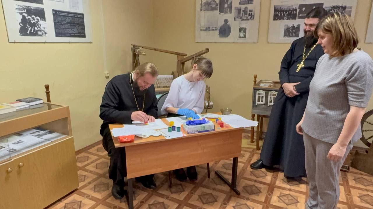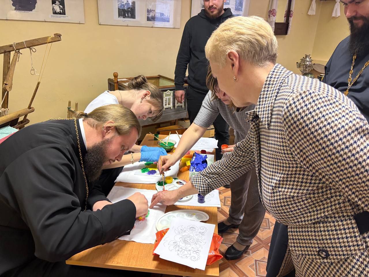 Юные экскурсоводы не только познакомили митрополита с атмосферой русского быта и культуры середины прошлого века, но и провели увлекательный мастер-класс по красильному искусству, демонстрируя традиционные ремесла.