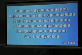 В завершение встречи министр поблагодарила всех работников сферы образования Гусь-Хрустального района за их профессиональный труд и преданность делу, а также поздравила коллективы с наступающим Новым годом, пожелав новых успехов и достижений.