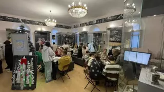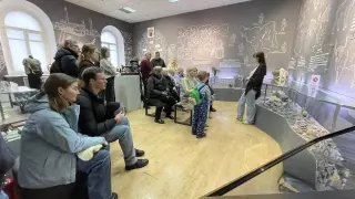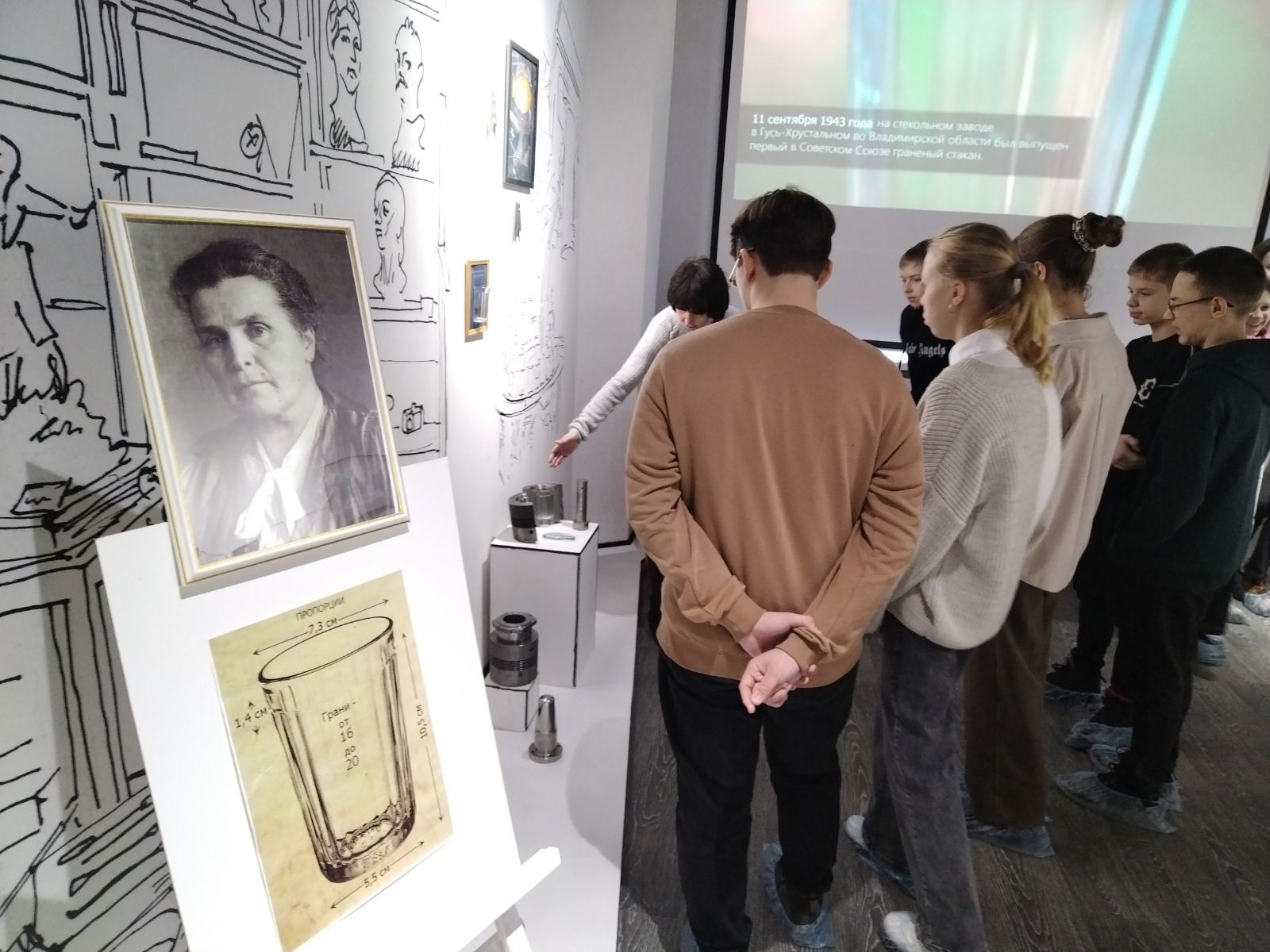 Затем состоялась экскурсия об истории основания Гусь‑Хрустального. Участники узнали о мастерах, прославивших город, и ключевых этапах развития стекольной промышленности.
