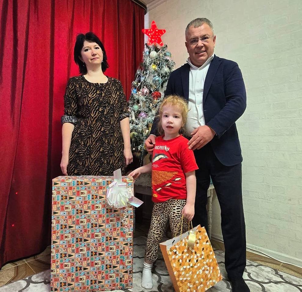 Председатель комитета по социальной политике и здравоохранению Николай Балахин подарил юной Кате, жительнице города Курлово, тёплый зимний костюм для прогулок на свежем воздухе и дополнил сюрприз сладким новогодним набором.