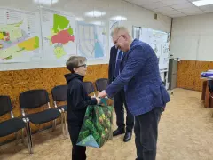 Вице-спикер Законодательного Собрания Вячеслав Картухин вручил новогодний подарок Ивану из города Камешково. Энергичный парень увлекается туризмом, современный спальный мешок станет для него незаменимым в первом большом походе.