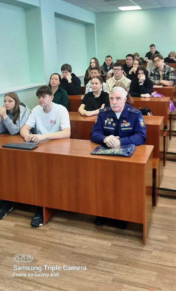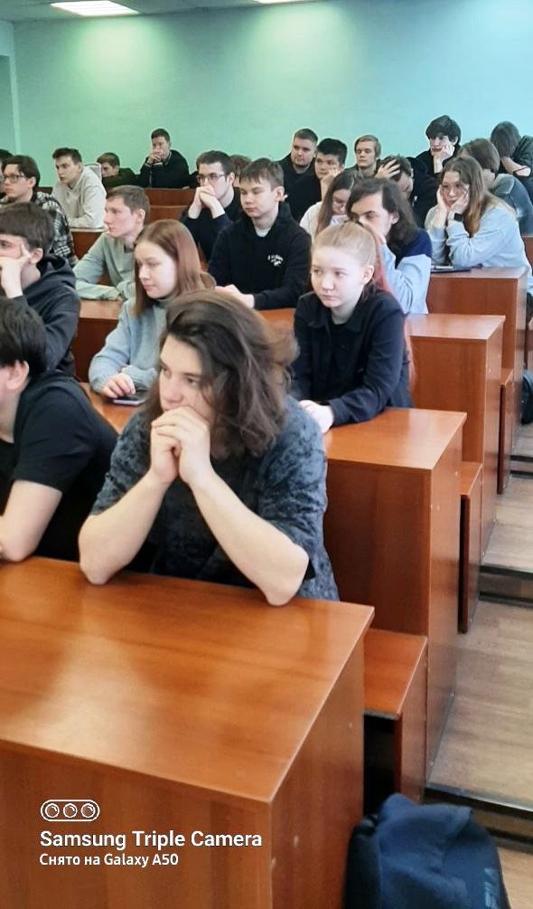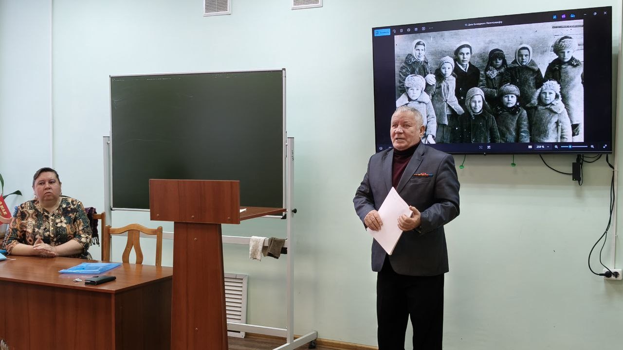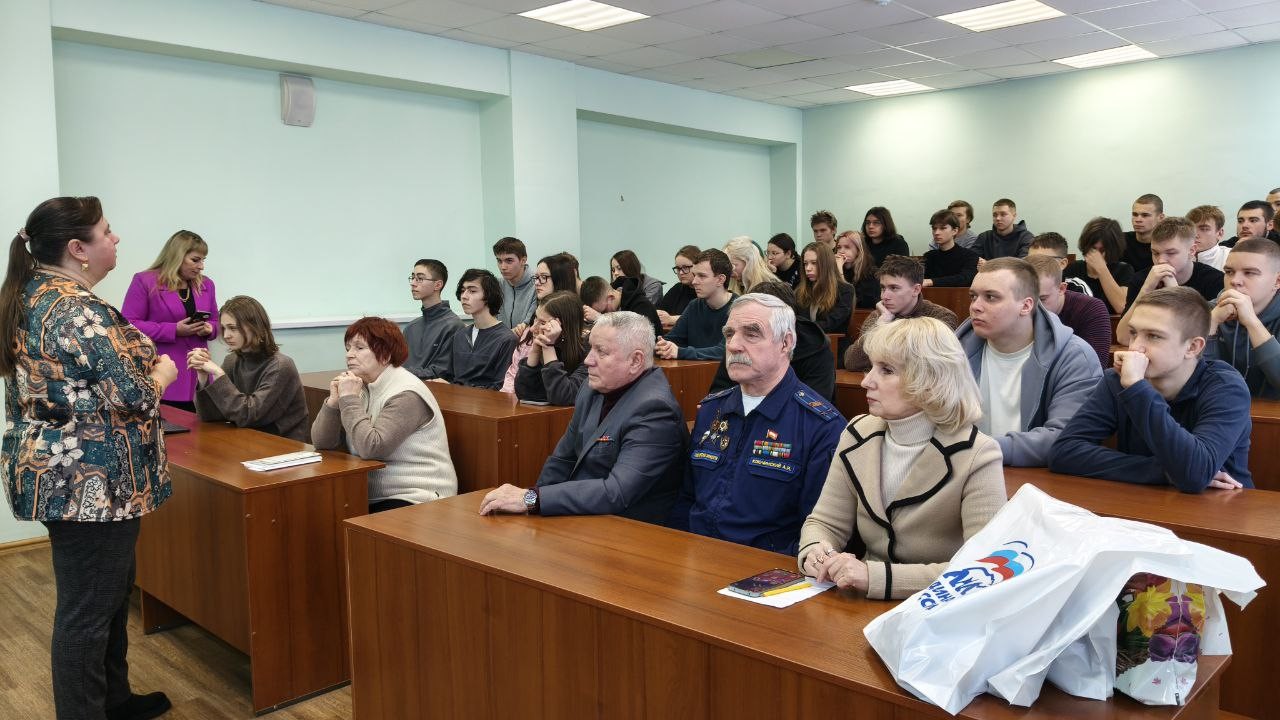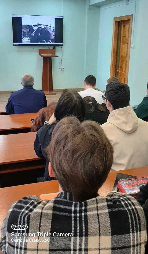 Студенты и школьники с уважением и большим интересом слушали рассказ Нины Николаевны Лариной о суровом военном и послевоенном детстве, лишениях и бедах постигших их семью, об эвакуации по Ладожскому озеру «Дороге жизни».