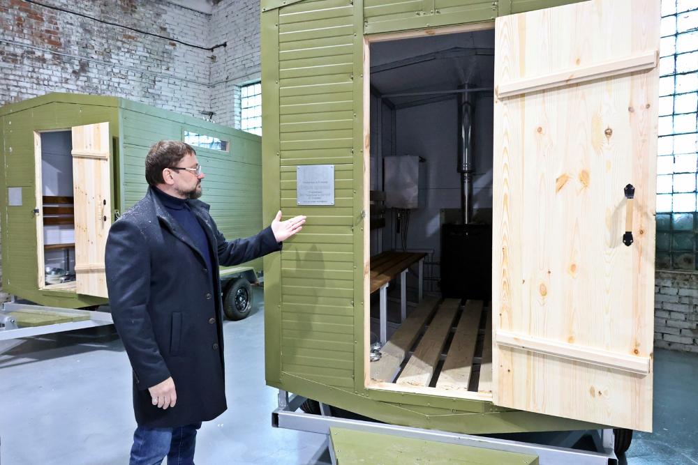 «В начале спецоперации военные сетовали на то, что им негде помыться, попариться. И тогда было принято решение, что нужно изготовить полевую баню, которую можно легко прицепить к любому транспорту и привезти в любое место расположения войск. Проект такой бани разработал гендиректор завода Александр Вдовин», – рассказал председатель совета директоров ГК ООО «Завод «Бетал» Тимур Рамазанов.