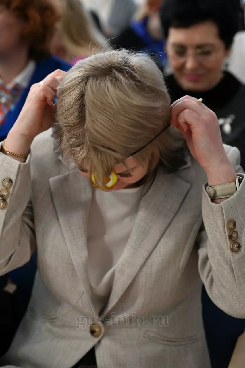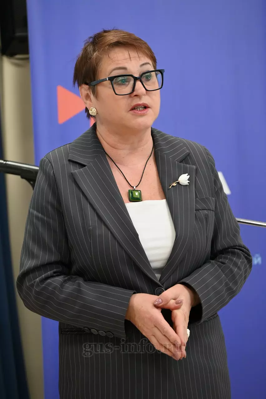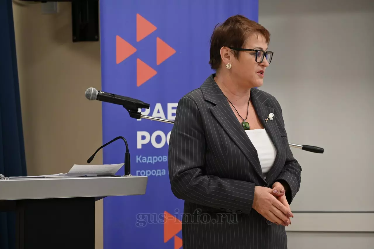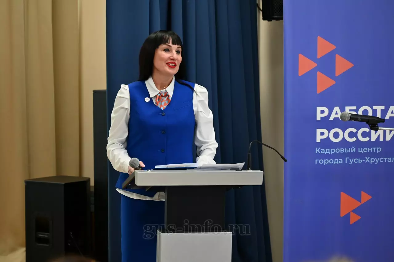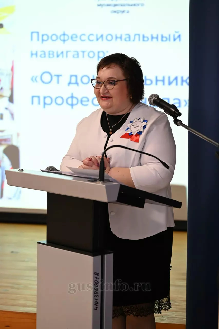 Оксана Фѐдорова, начальник управления образования Гусь-Хрустального муниципального округа, выступила с докладом по теме: «Система образования Гусь-Хрустального муниципального округа: ключевые ориентиры в профориентационной деятельности».