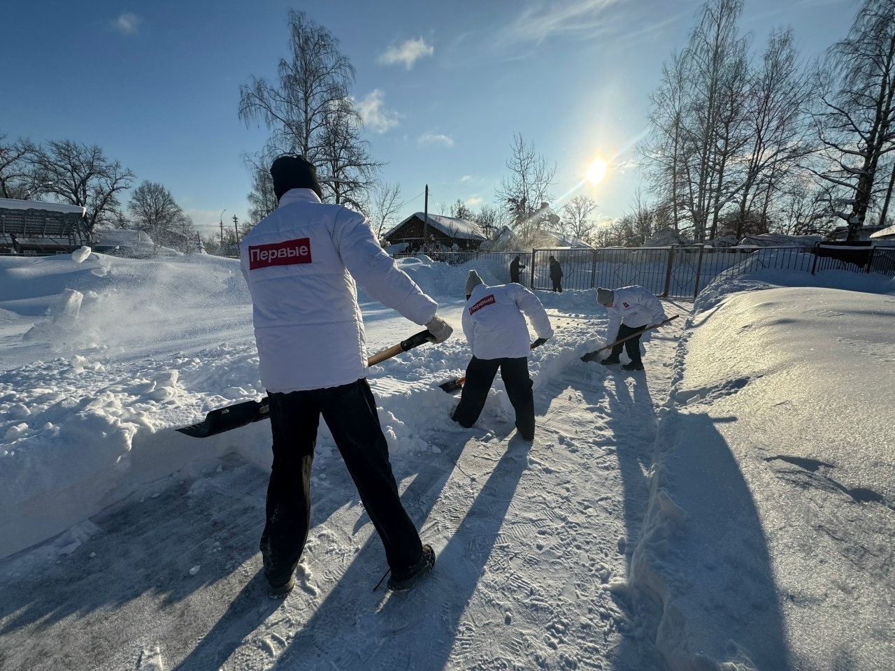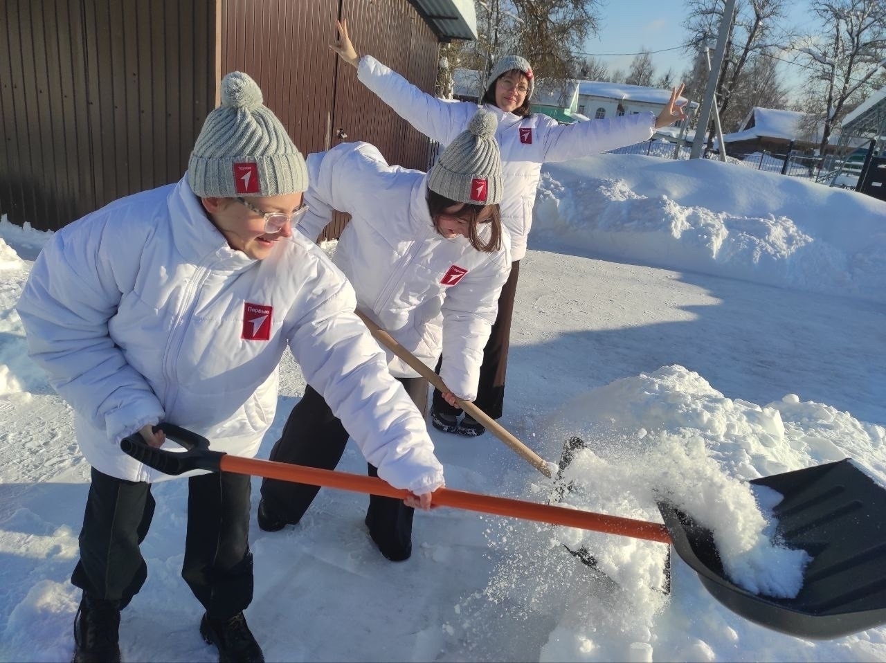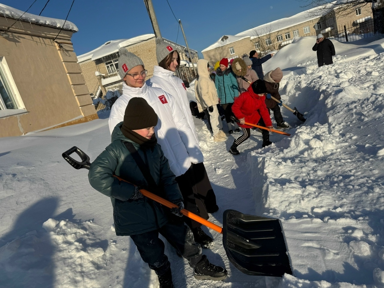 Воспитанники детского центра «Импульс» и активисты Движения Первых Гусь-Хрустального муниципального округа приняли активное участие в акции «Вместе против снежных завалов».