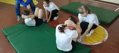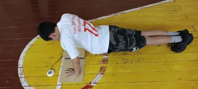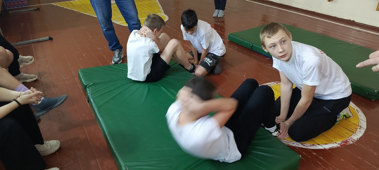 Более 30 учащихся из трех классов в возрасте 12-16 лет сдали нормативы по 4 упражнениям: сгибание разгибание рук в упоре лежа на полу, подъем туловища из положения лежа, метание мяча на точность и показатель гибкости при наклоне вперед.