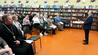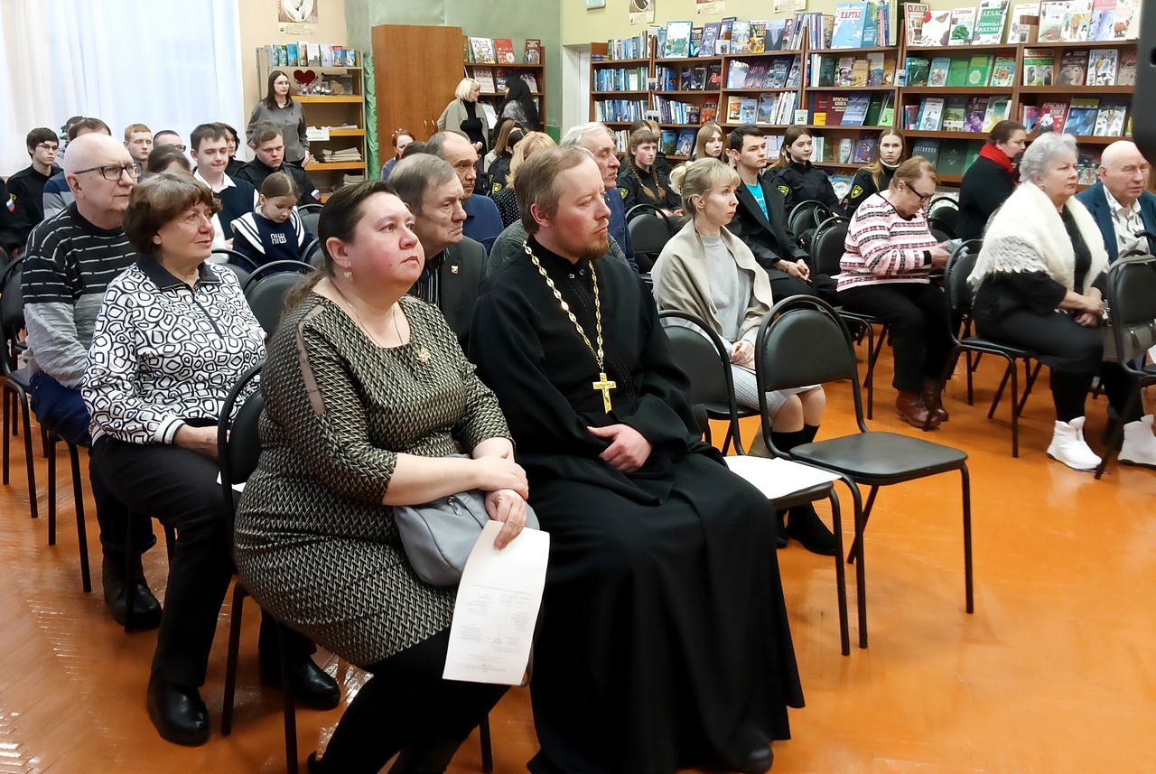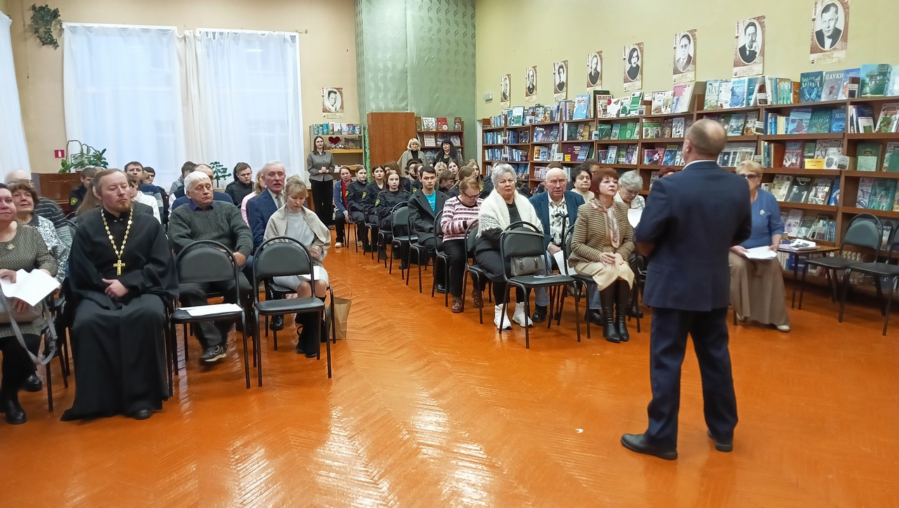 Встреча в читальном зале городской библиотеки с членами литературного объединения «Мещера», школьниками и студентами ГСК им. Г.Ф. Чехлова, представителями «Золотого возраста» проходила в преддверии Дня защитника Отечества.