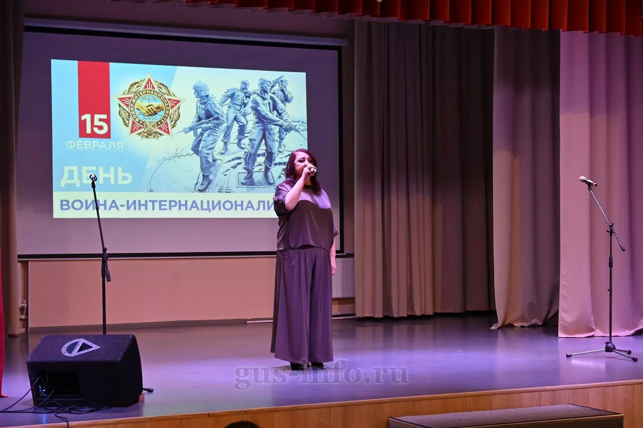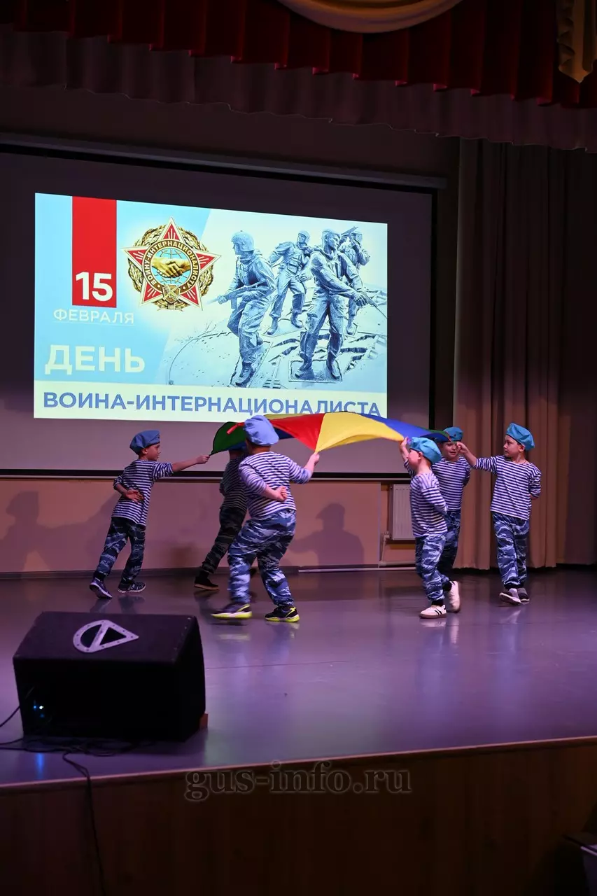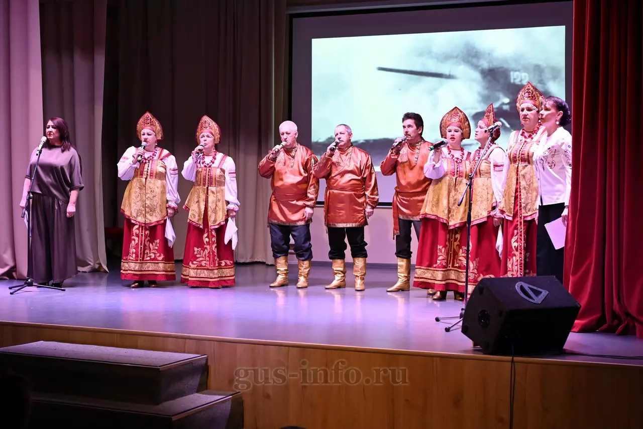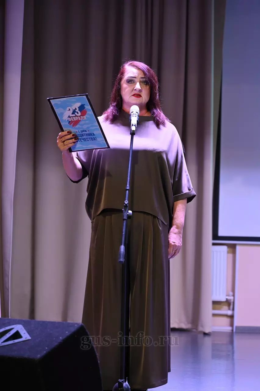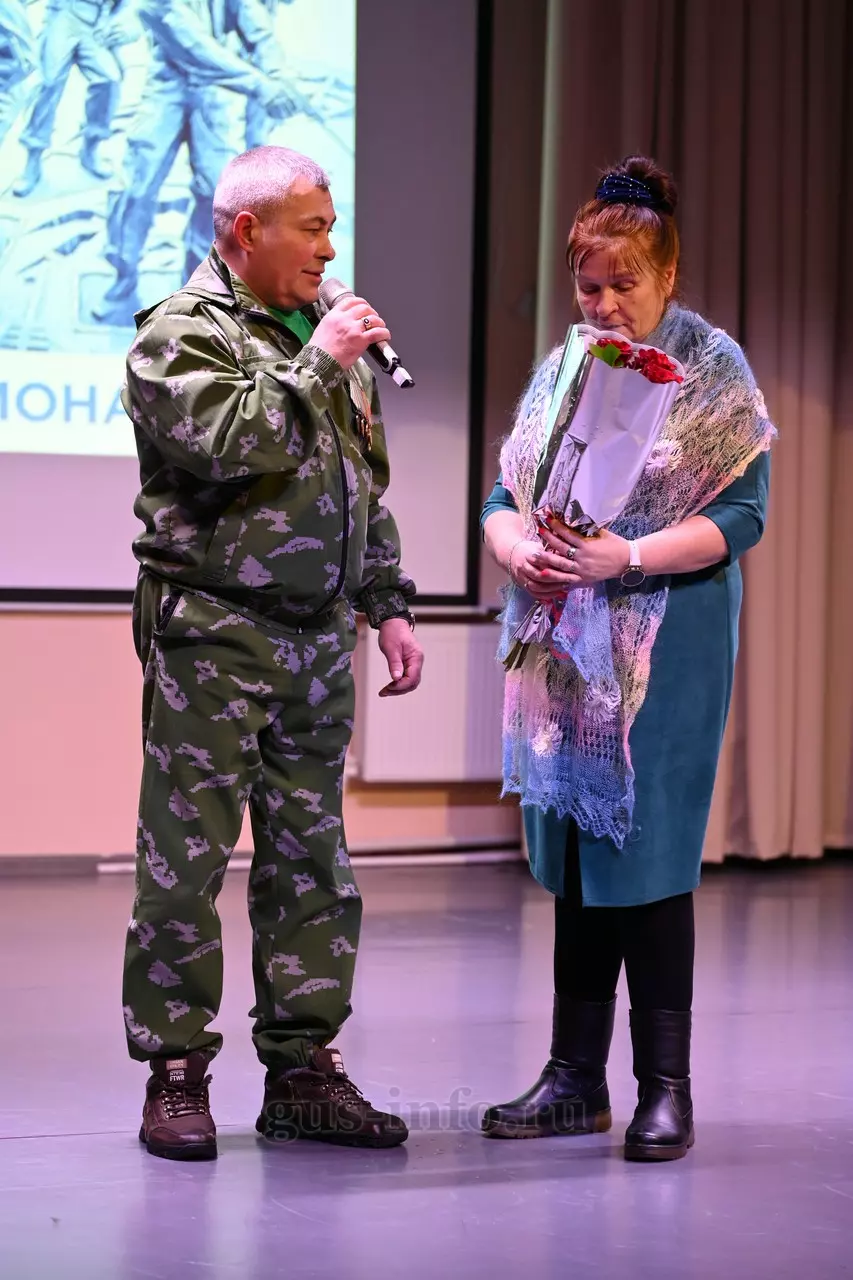 Продолжился праздник в стенах дома культуры яркой и душевной концертной программой. В мероприятии приняла участие заместитель главы администрации Гусь-Хрустального муниципального округа Мария Куликова. Она обратилась к собравшимся со словами благодарности и уважения: «Слава, честь и достоинство российского солдата не померкли ни в годы Великой Отечественной войны, ни в Афганистане, ни в боях с террористами в Чечне. Весь мир восхищается силой русского духа! Сегодня наши ребята также достойно и мужественно выполняют свой воинский долг по защите Отечества, сражаются с нацизмом на тех же рубежах, где воевали наши деды и прадеды. Мы гордимся нашими героями и ждем их с победой домой живыми и здоровыми!»