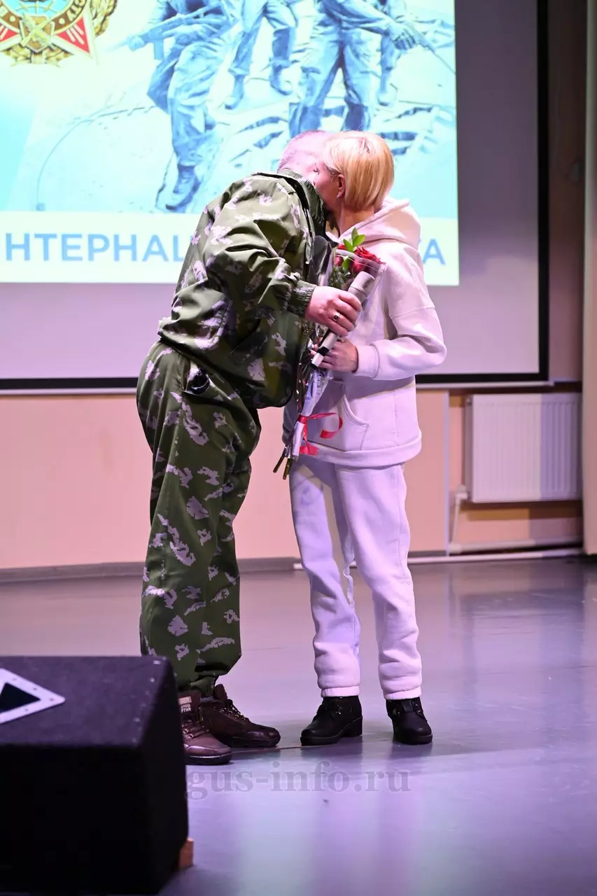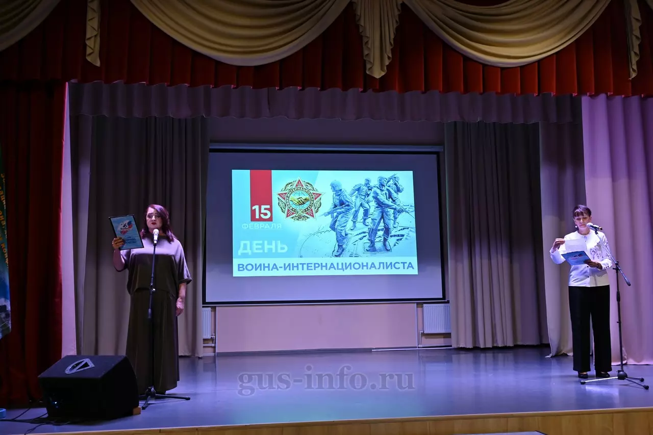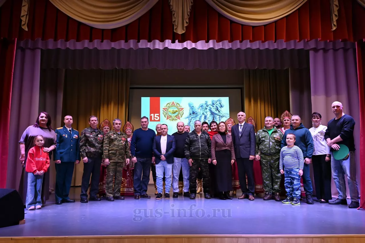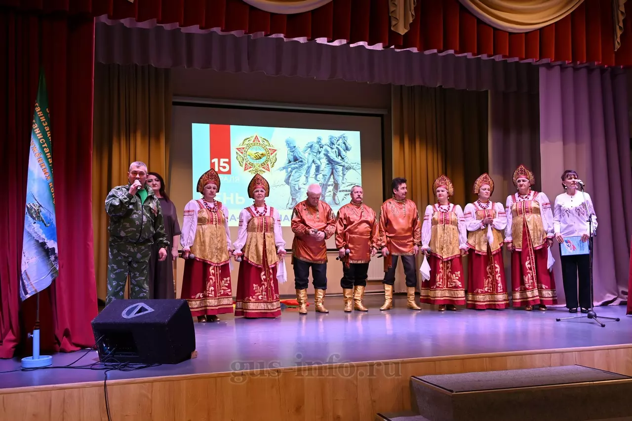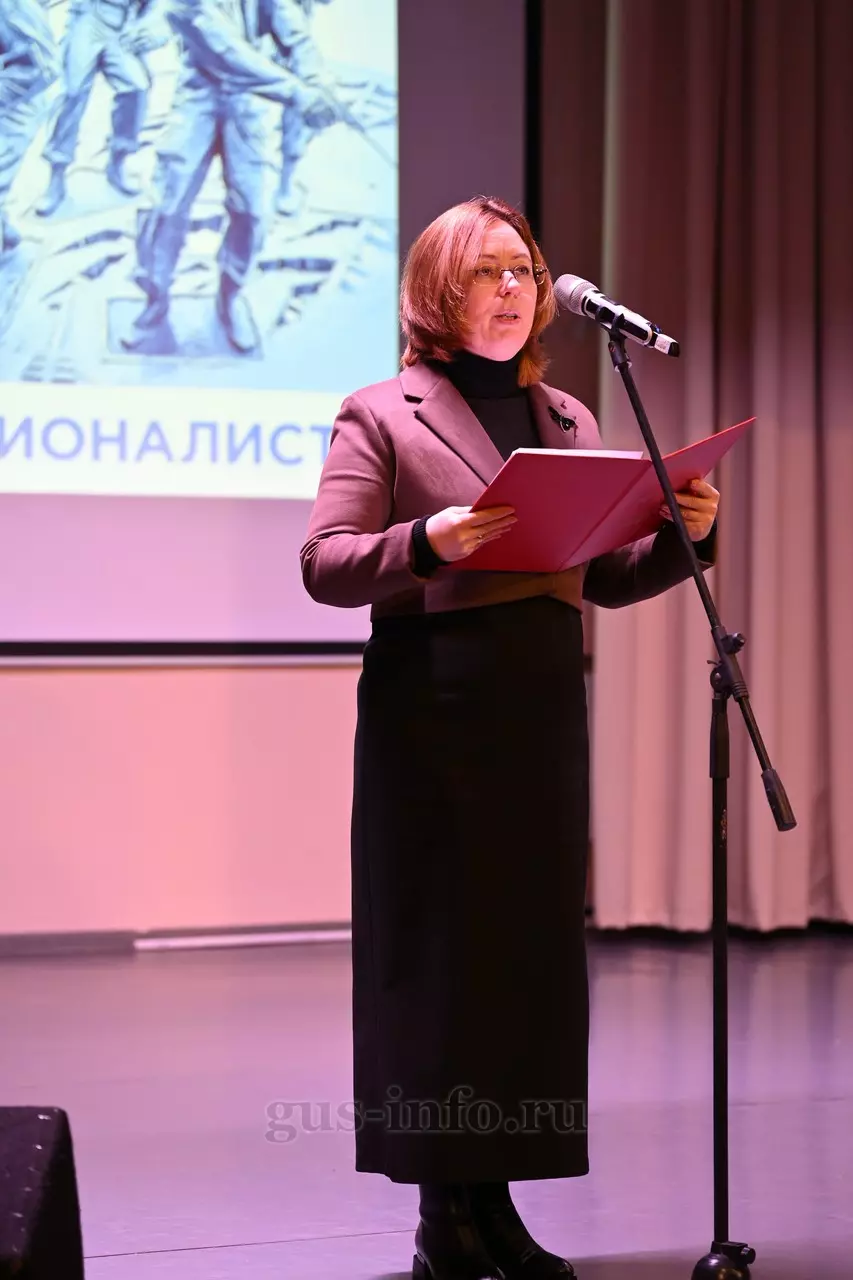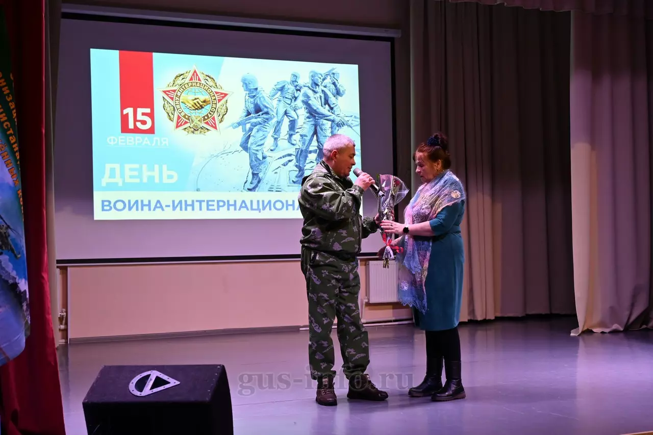 Продолжился праздник в стенах дома культуры яркой и душевной концертной программой. В мероприятии приняла участие заместитель главы администрации Гусь-Хрустального муниципального округа Мария Куликова. Она обратилась к собравшимся со словами благодарности и уважения: «Слава, честь и достоинство российского солдата не померкли ни в годы Великой Отечественной войны, ни в Афганистане, ни в боях с террористами в Чечне. Весь мир восхищается силой русского духа! Сегодня наши ребята также достойно и мужественно выполняют свой воинский долг по защите Отечества, сражаются с нацизмом на тех же рубежах, где воевали наши деды и прадеды. Мы гордимся нашими героями и ждем их с победой домой живыми и здоровыми!»