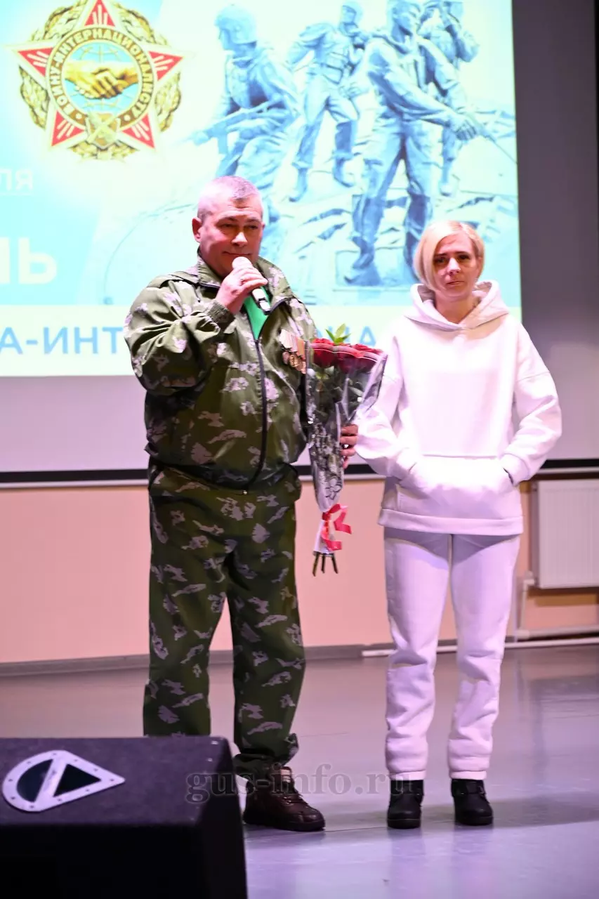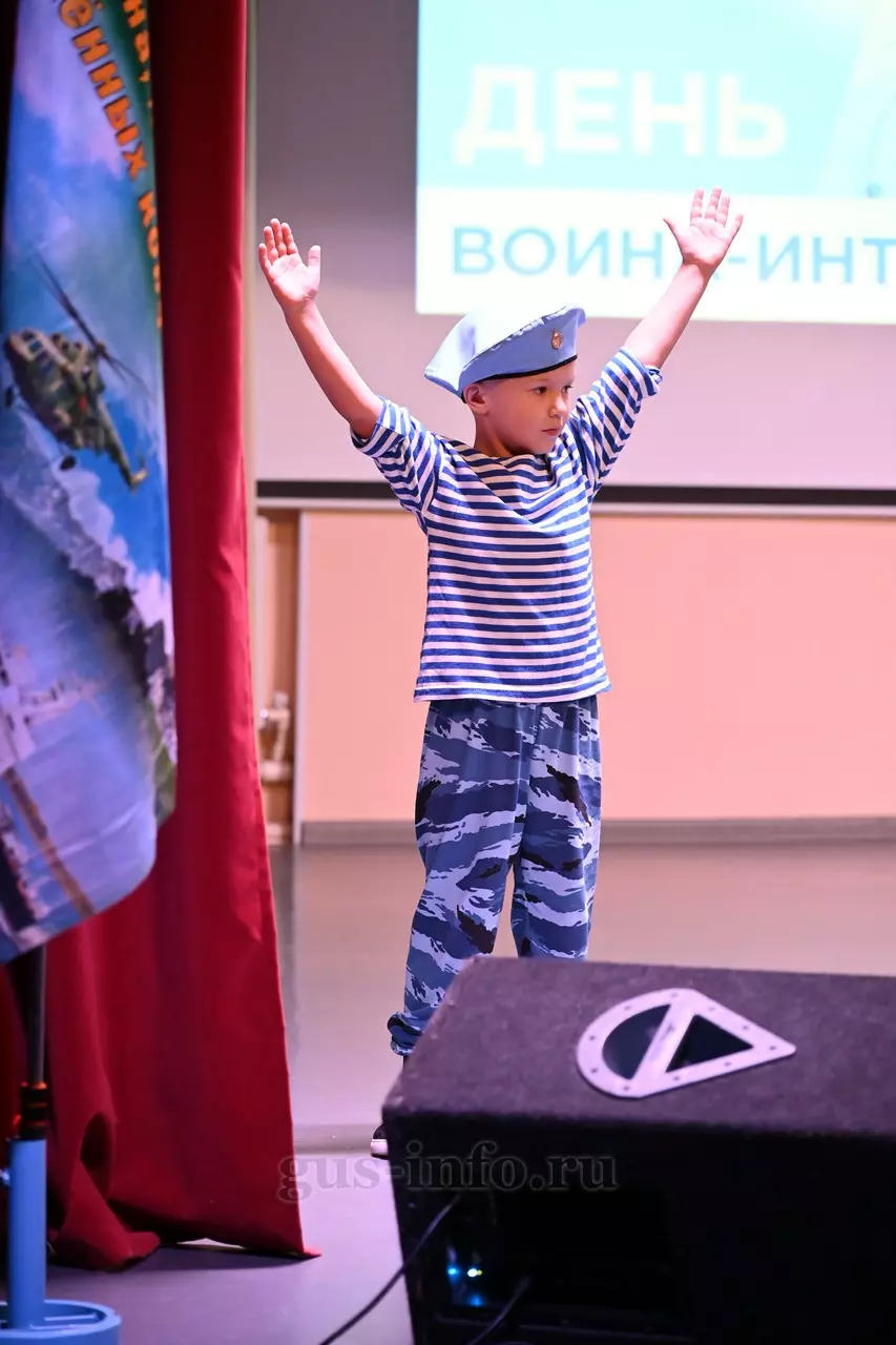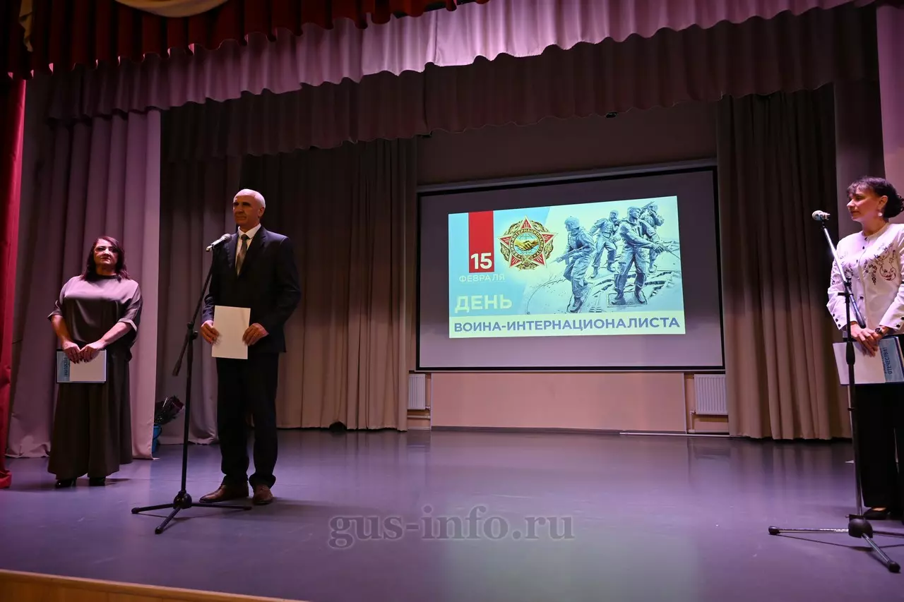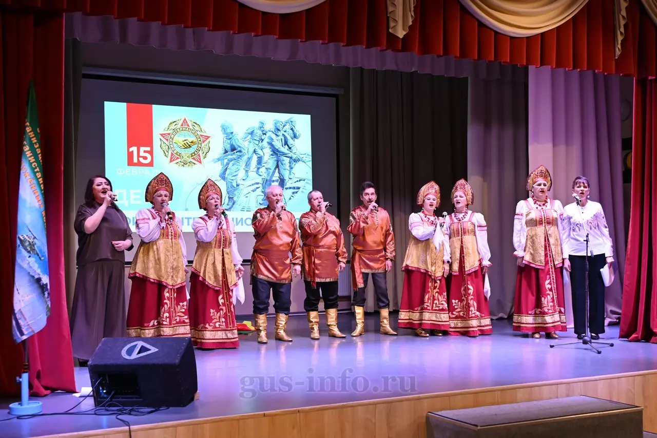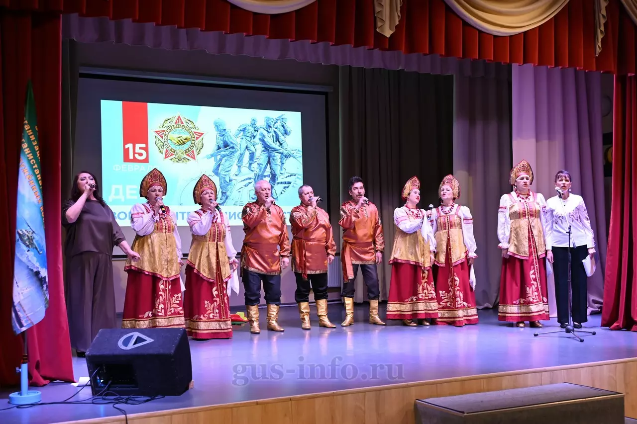 Продолжился праздник в стенах дома культуры яркой и душевной концертной программой. В мероприятии приняла участие заместитель главы администрации Гусь-Хрустального муниципального округа Мария Куликова. Она обратилась к собравшимся со словами благодарности и уважения: «Слава, честь и достоинство российского солдата не померкли ни в годы Великой Отечественной войны, ни в Афганистане, ни в боях с террористами в Чечне. Весь мир восхищается силой русского духа! Сегодня наши ребята также достойно и мужественно выполняют свой воинский долг по защите Отечества, сражаются с нацизмом на тех же рубежах, где воевали наши деды и прадеды. Мы гордимся нашими героями и ждем их с победой домой живыми и здоровыми!»