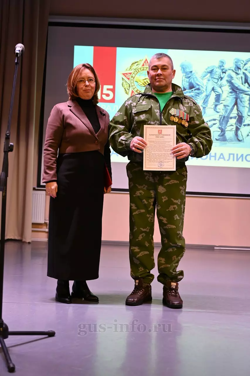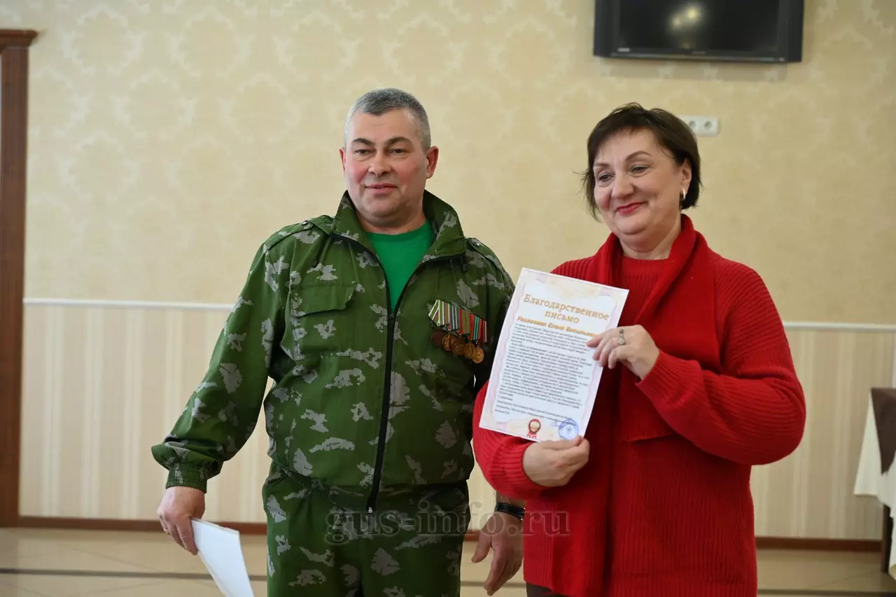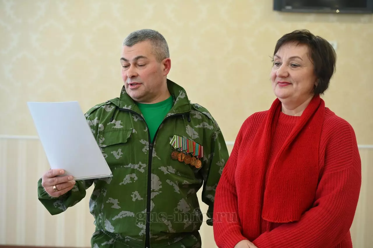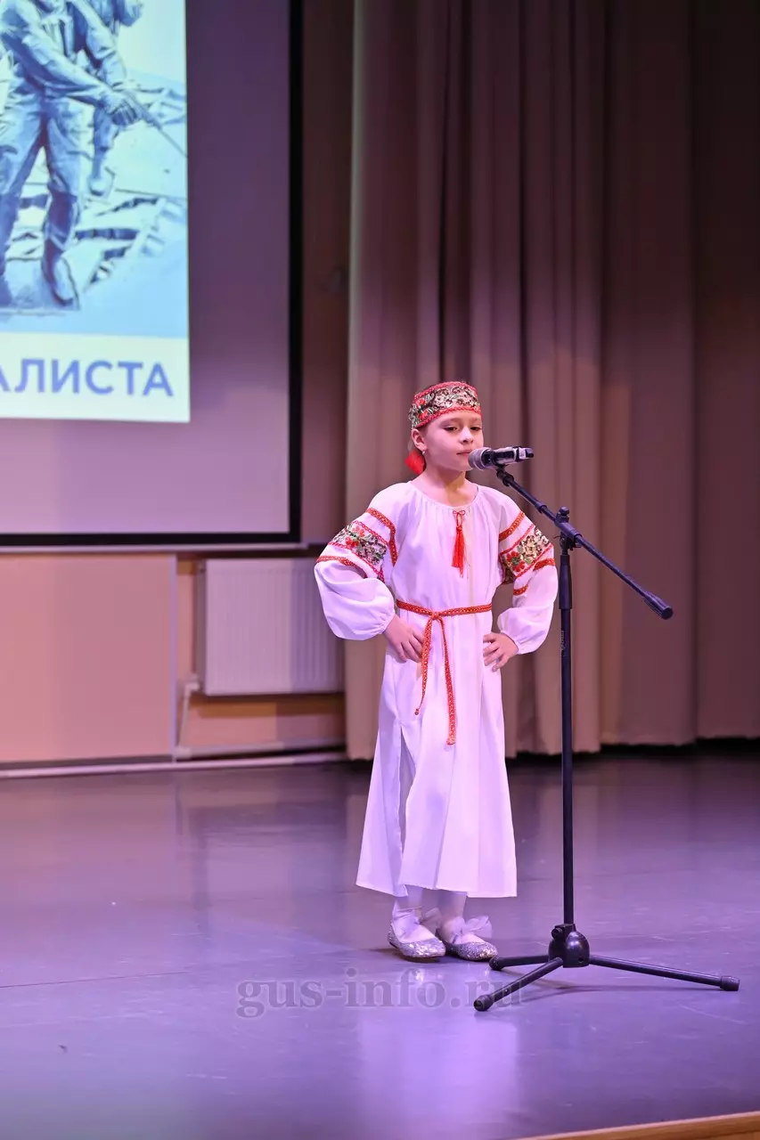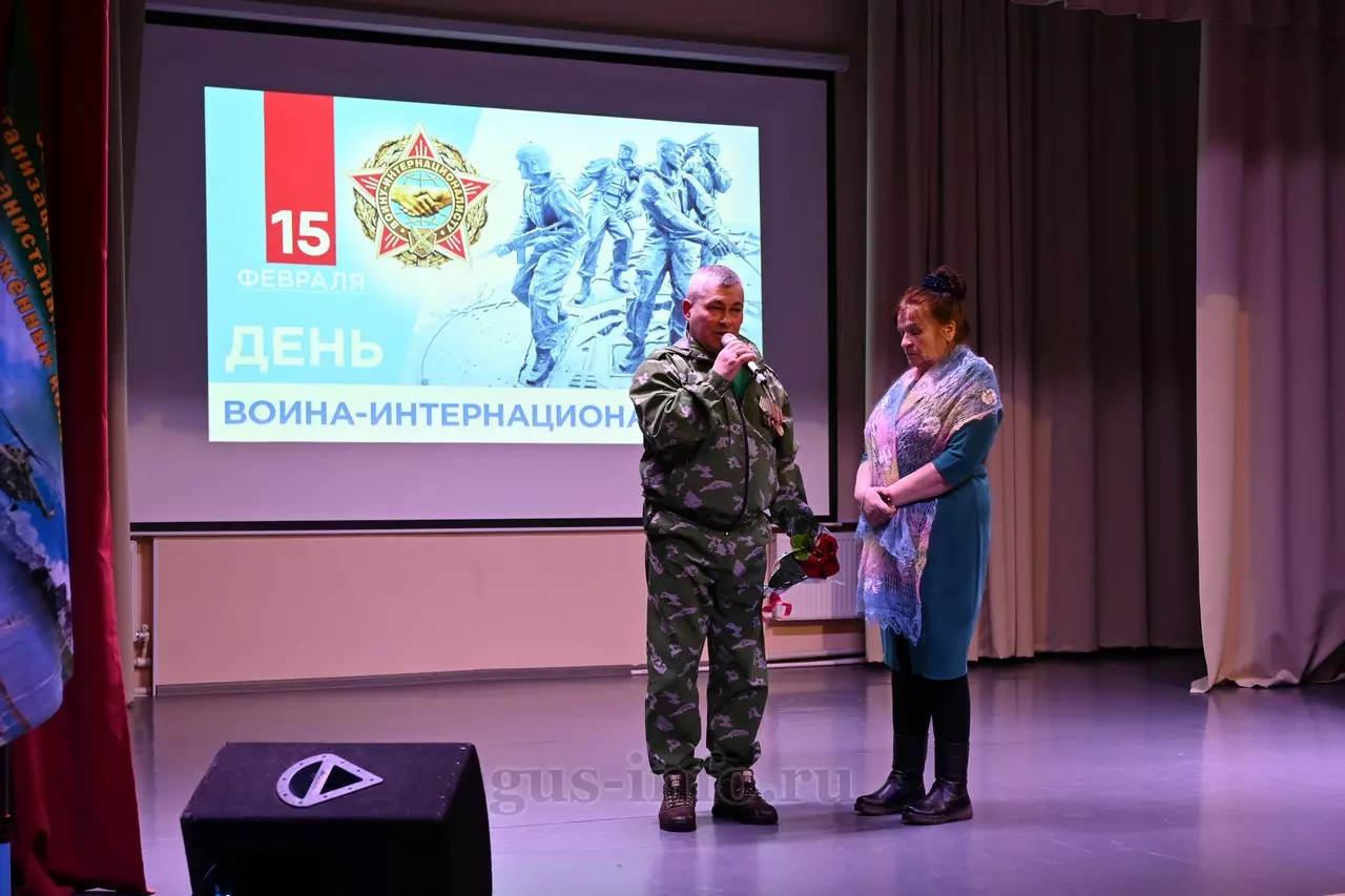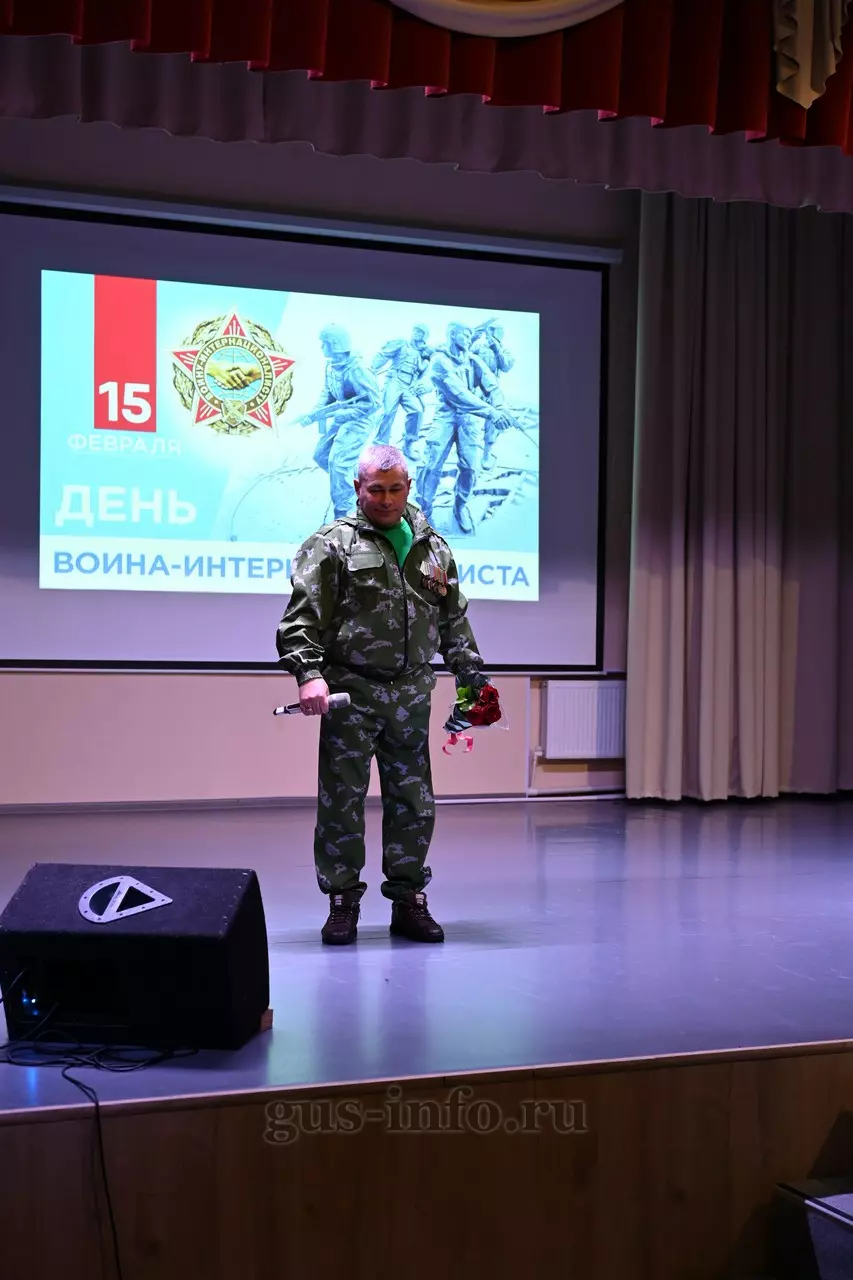 Продолжился праздник в стенах дома культуры яркой и душевной концертной программой. В мероприятии приняла участие заместитель главы администрации Гусь-Хрустального муниципального округа Мария Куликова. Она обратилась к собравшимся со словами благодарности и уважения: «Слава, честь и достоинство российского солдата не померкли ни в годы Великой Отечественной войны, ни в Афганистане, ни в боях с террористами в Чечне. Весь мир восхищается силой русского духа! Сегодня наши ребята также достойно и мужественно выполняют свой воинский долг по защите Отечества, сражаются с нацизмом на тех же рубежах, где воевали наши деды и прадеды. Мы гордимся нашими героями и ждем их с победой домой живыми и здоровыми!»