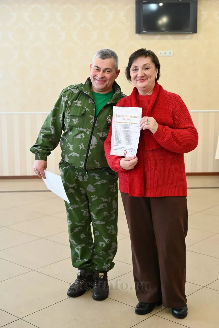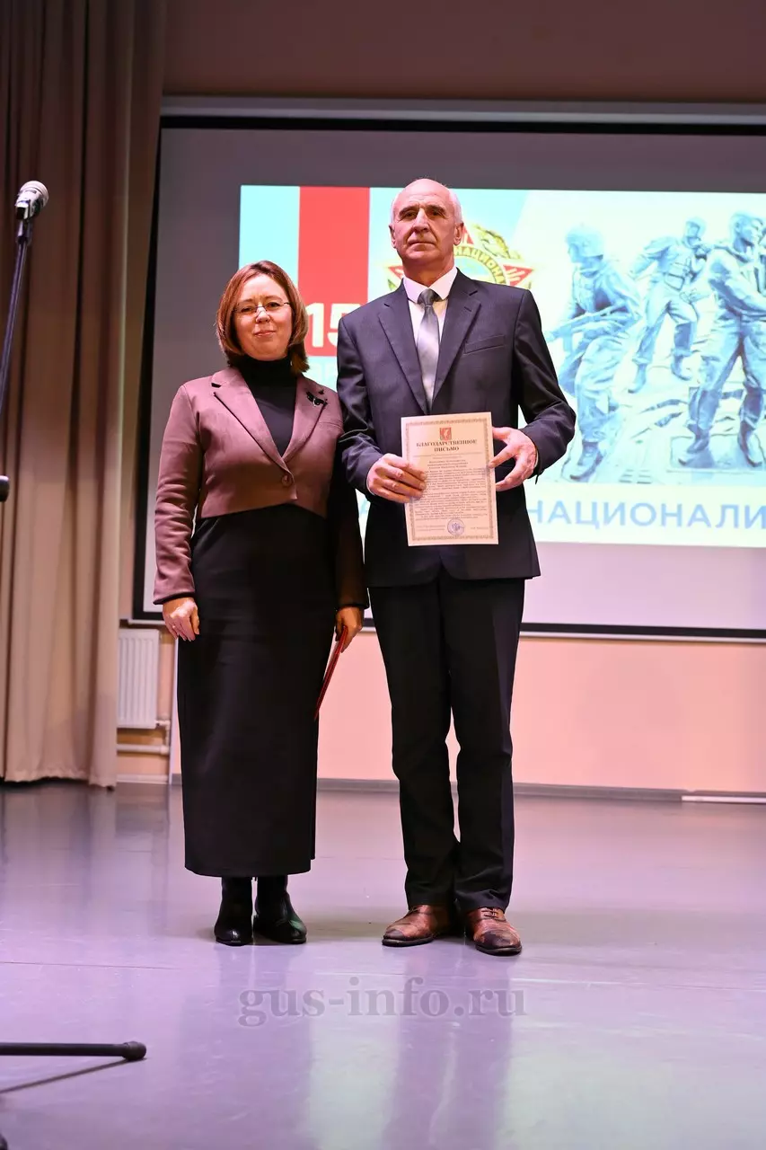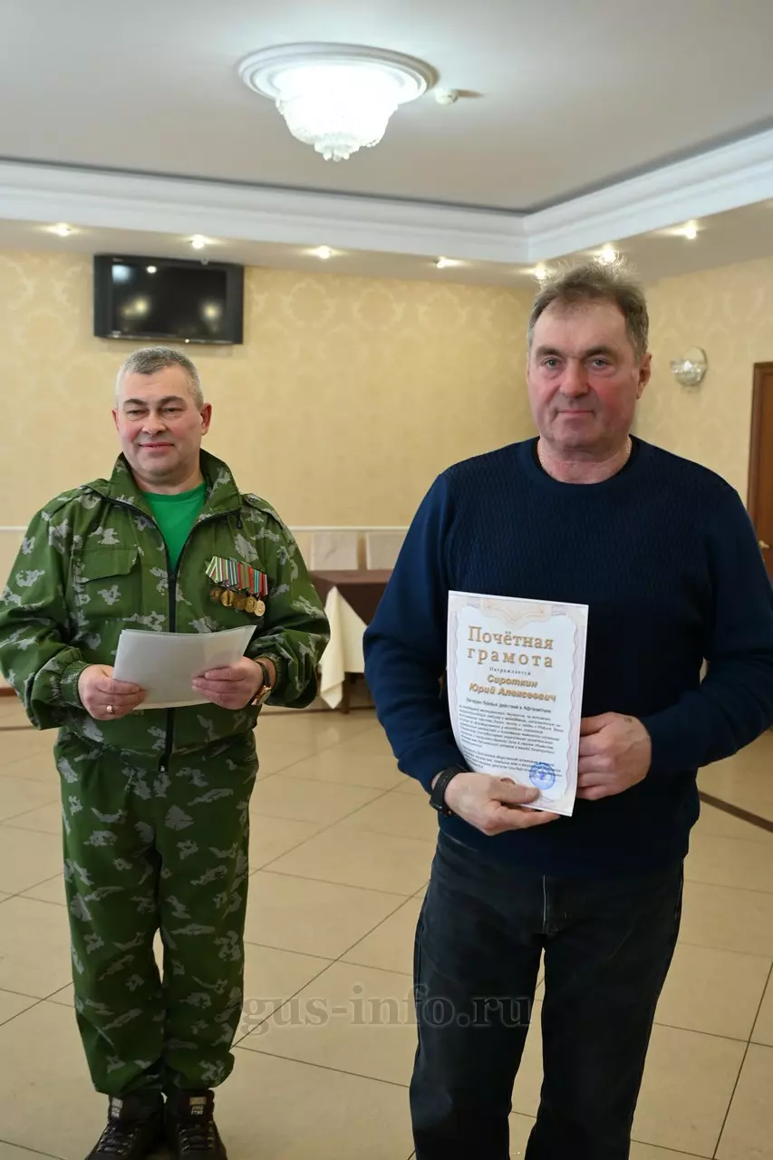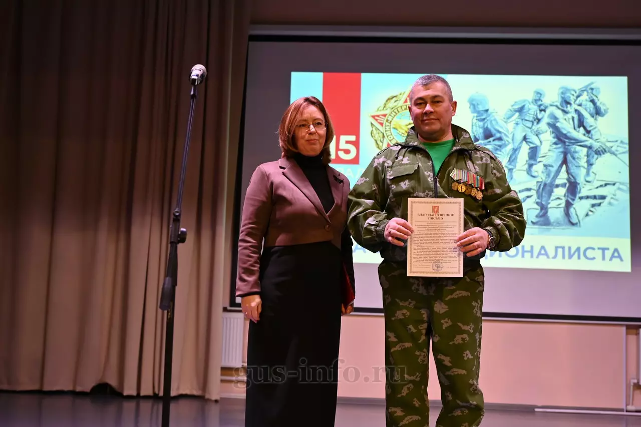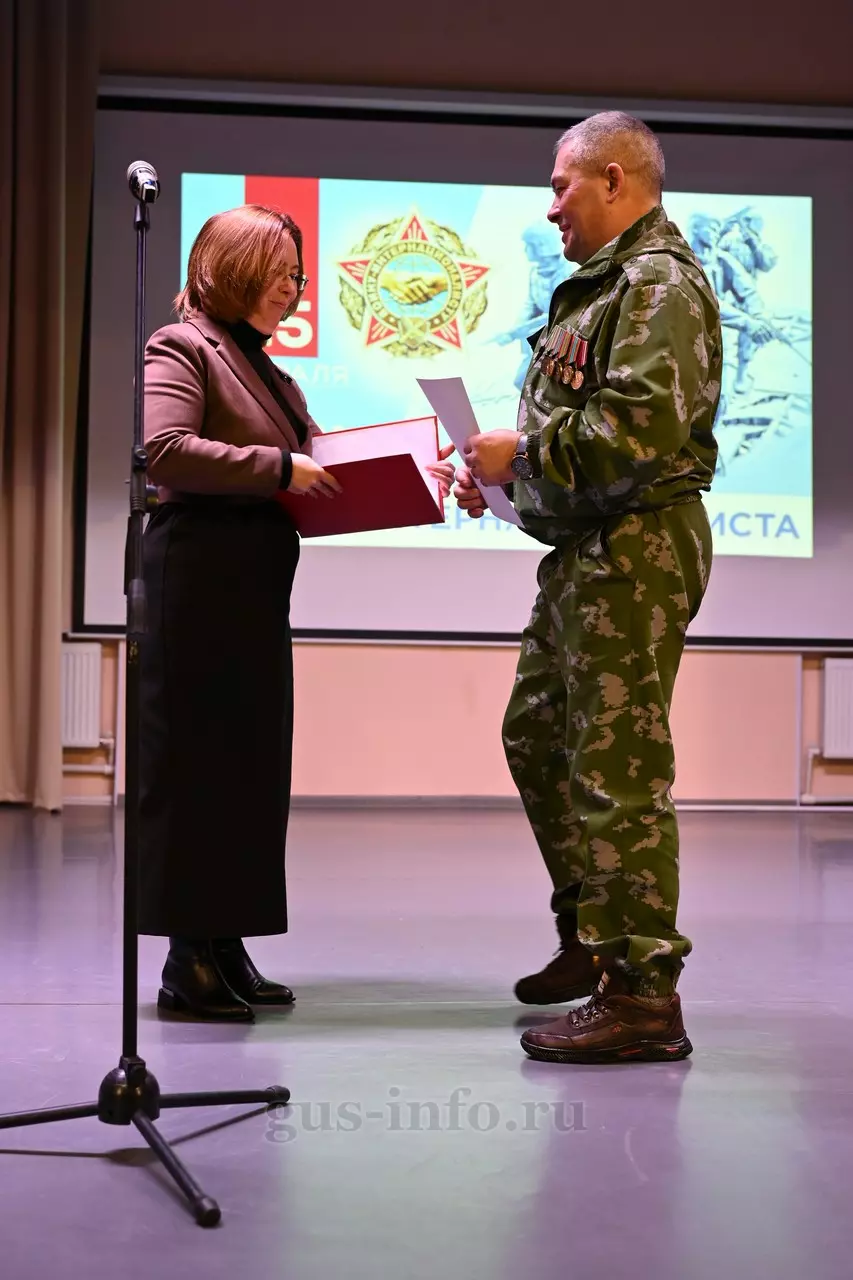 Продолжился праздник в стенах дома культуры яркой и душевной концертной программой. В мероприятии приняла участие заместитель главы администрации Гусь-Хрустального муниципального округа Мария Куликова. Она обратилась к собравшимся со словами благодарности и уважения: «Слава, честь и достоинство российского солдата не померкли ни в годы Великой Отечественной войны, ни в Афганистане, ни в боях с террористами в Чечне. Весь мир восхищается силой русского духа! Сегодня наши ребята также достойно и мужественно выполняют свой воинский долг по защите Отечества, сражаются с нацизмом на тех же рубежах, где воевали наши деды и прадеды. Мы гордимся нашими героями и ждем их с победой домой живыми и здоровыми!»