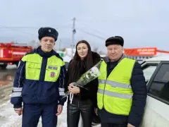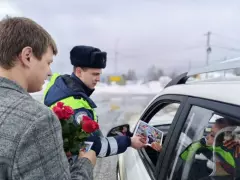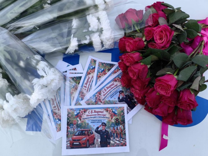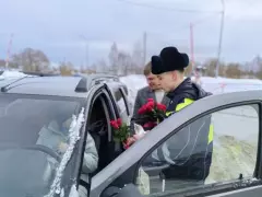 Вместо проверки документов - букет цветов и добрые слова. Инспекторы дорожно-патрульной службы останавливали автомобили, за рулем которых находились женщины, дарили цветы и поздравительные открытки.