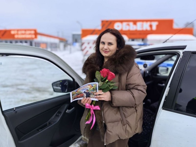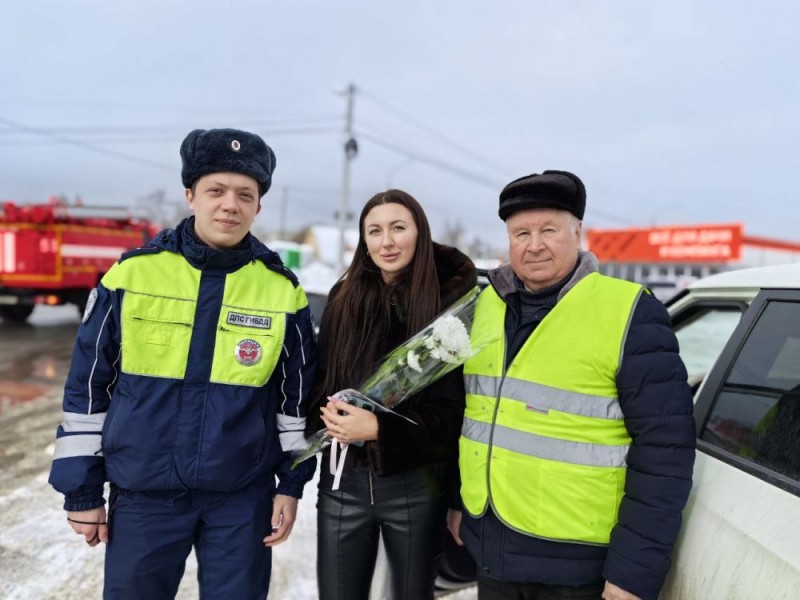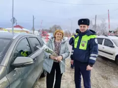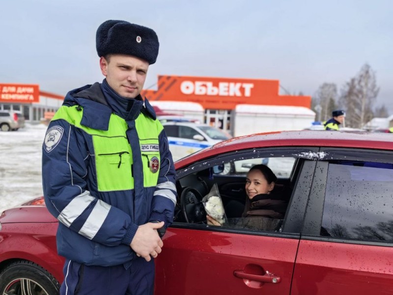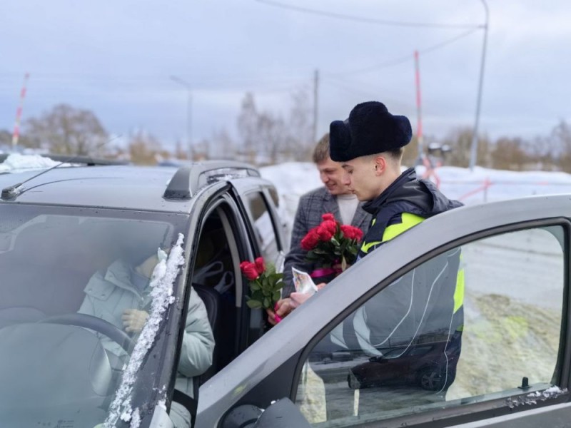 Полицейские, представители народной дружины и общественники поздравляют прекрасных автоледи с весенним праздником