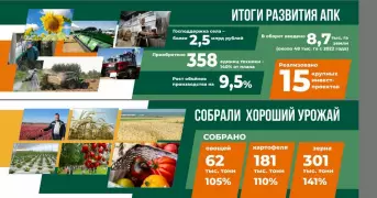 Губернатор подчеркнул, что расширение пашенных площадей, переоснащение сельхозпроизводства вкупе с профессионализмом наших аграриев даёт результат в увеличении урожаев. В прошлом году было собрано 301 тыс. тонн зерна, 181 тыс. тонн картофеля, 62 тысячи тонн овощей.