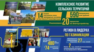 «По одноимённой программе 14 семей улучшили жильё, реализовано 20 проектов благоустройства. Возводим ФОК и детский сад в Лакинске, спорткомплекс в Киржаче. В Меленковском округе создали инфраструктуру для строительства жилья для работников племенного завода «Илькино». Два дома уже стоят. Идёт дорожное строительство и ремонт. Теперь есть асфальтированный подъезд к деревне Лошаиха в Камешковском округе. А в Юрьев-Польском округе капитально отремонтирован мост между сёлами Калиновка и Сосновый бор», – подытожил Губернатор.