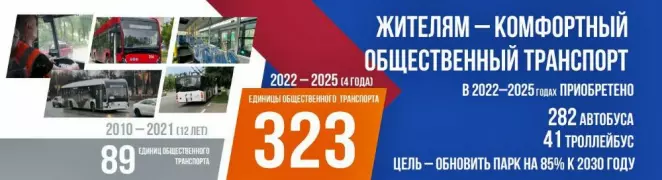 Поступательно улучшается ситуация в сфере пассажирских перевозок. За 4 года для нужд муниципалитетов закупили 323 единицы общественного транспорта (282 автобуса и 41 троллейбус). Для сравнения: за предыдущие 12 лет было приобретено всего 89 машин. До 2030 года планируется закупить не менее 330 автобусов и троллейбусов, обновив парк на 85 процентов. Важно, что это затронет не только крупные населённые пункты, но и небольшие – такие, как Радужный и Красная Горбатка.