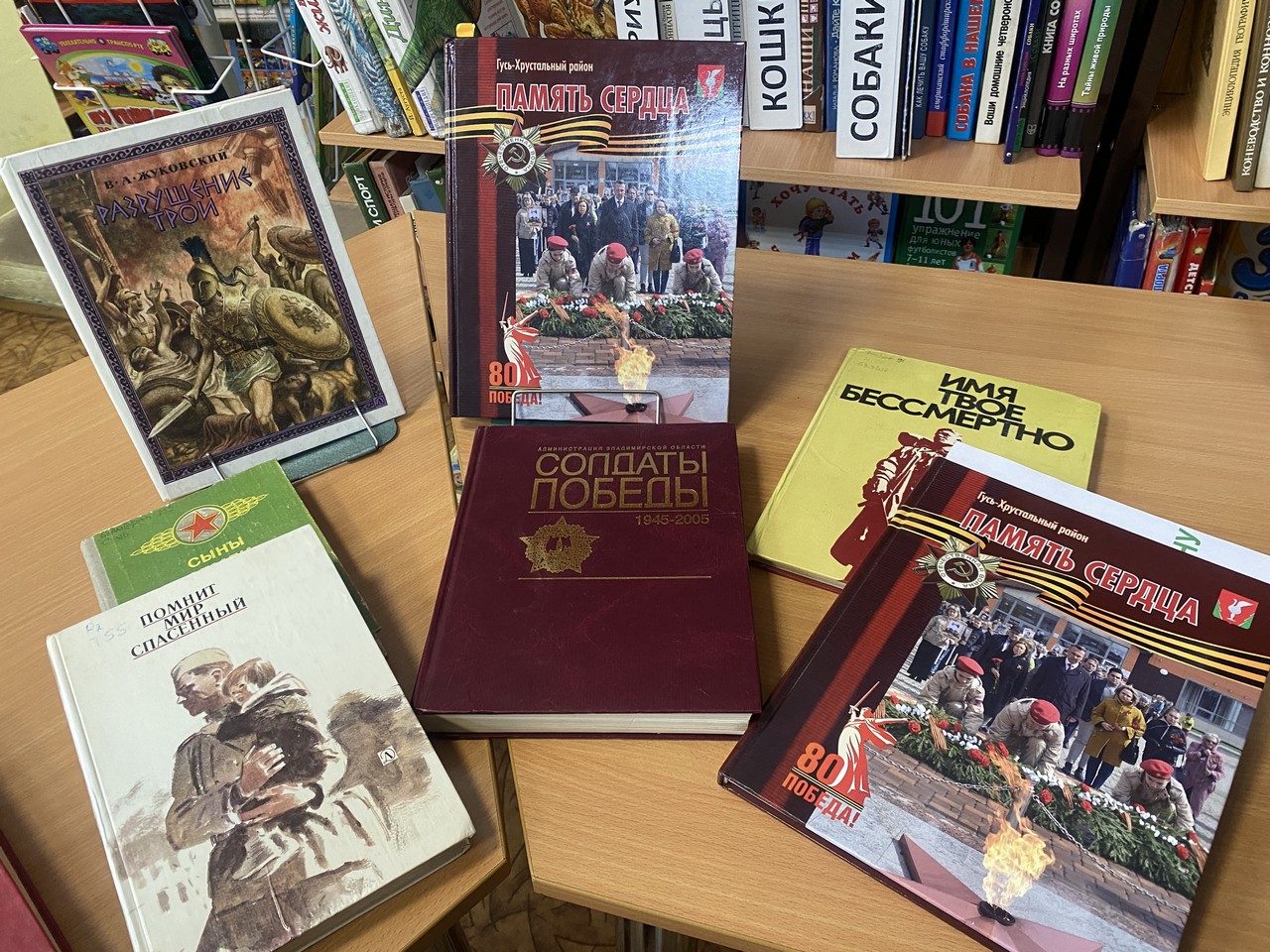 Учащиеся вспомнили о подвигах 12 земляков, Героях Советского Союза, о которых подробно рассказано в книге «Гусь-Хрустальный район. Память сердца», изданной в прошлом году. Ребята с замиранием сердца слушали рассказы о наших соотечественниках, чья жизнь и героические подвиги являются ярким образцом подражания для подрастающего поколения. Кроме того, учащиеся познакомились с Книгой Памяти, куда включены имена участников Великой Отечественной войны, а также читали письма с фронта земляков-фронтовиков.