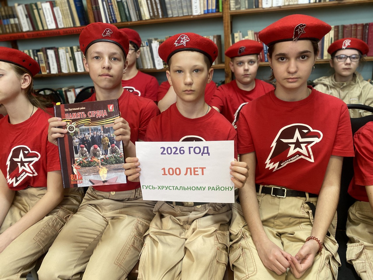 Юнармейцы Курловской средней школы стали активными участниками городского мероприятия «Герои победы родного края», посвященного 100-летию Гусь-Хрустального района. Организатором встречи выступила библиотека семейного чтения города Курлово.