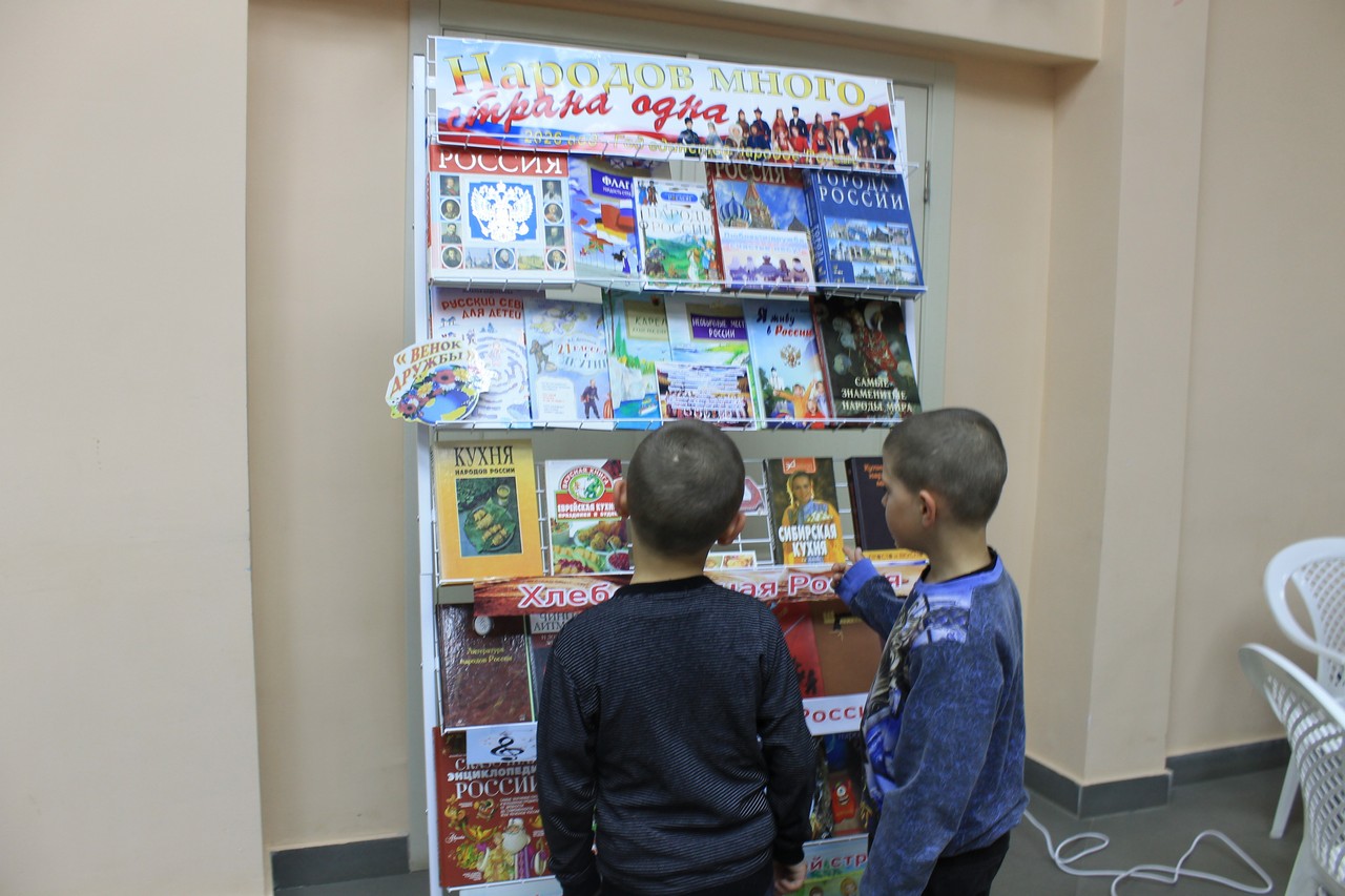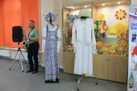Вниманию гостей были представлены книжные выставки и выставка костюмов народов России.