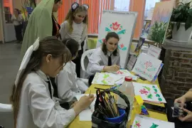 Для гостей работали тематические мастер-классы: «Русский стиль» (роспись по дереву), «Северная берегиня» (изготовление кукол), «Триколор из ленточек», «Татарский орнамент» и «Аквагрим».