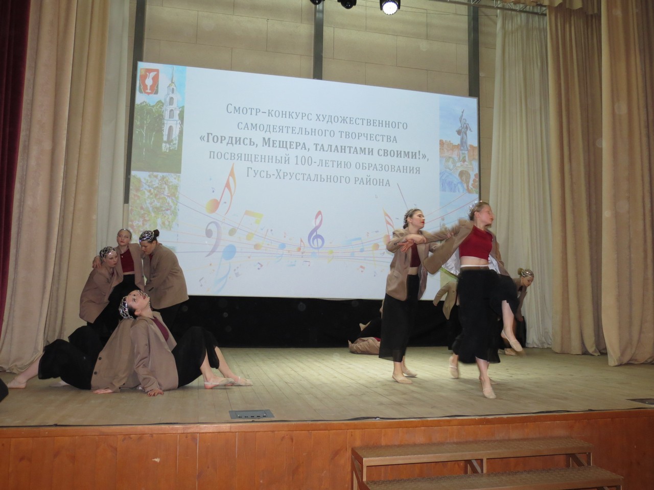 18 апреля на базе МБУК «Центр культурного развития Гусь-Хрустального округа» состоялся традиционный смотр-конкурс художественного самодеятельного творчества «Гордись, Мещера, талантами своими!». Мероприятие собрало детские творческие коллективы со всего Гусь-Хрустального округа и стало настоящим праздником искусства и вдохновения.