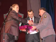 С праздником всех присутствующих поздравил Глава МО г. Гусь – Хрустальный Ю. В. Гришкин и вручил грамоты и благодарственные письма сотрудникам УВД и активным членам ДНД.