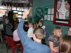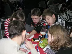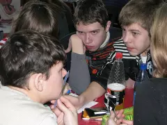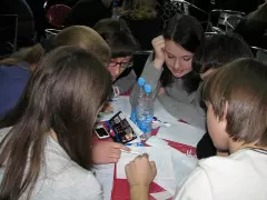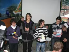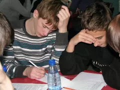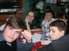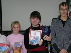 Но если в студенческом зачёте первое место принадлежит гостям, то чемпионство в школьной группе досталось команде из Гуся! Школа №15, заслужившая по итогам городского чемпионата, заявить на «Кубок Мещеры» три команды, воспользовалась своим правом сполна. Победу в турнире одержала команда «Имаго» (Василий Палагин, Елена Мороз, Вадим Сотников, Евгения Шпакова, Арсений Вишняков, Татьяна Морозова). Третье место заняла команда «Семён» (экс-«Универ») в составе: Виктория Пекова, Илья Лимонов, Андрей Скачков, Светлана Кравченко, Мария Хрулькова, Дмитрий Бельцов. Между ними вклинилась команда «Пыльные сапоги» из Коврова, выставившего на наш турнир внушительный «десант» из семи (!) команд. Остаётся по-белому завидовать коллегам из Коврова, которым в родном городе помогли решить транспортные проблемы с таким массовым выездом.