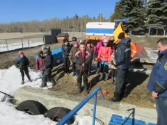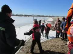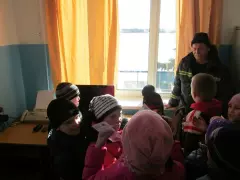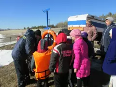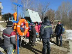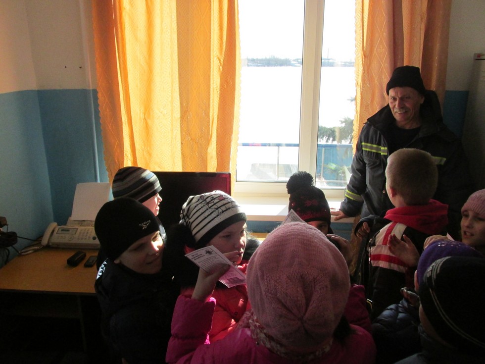 Первым пунктом ознакомительной экскурсии была дежурная комната спасателей, куда поступают звонки или другие сигналы о помощи. Далее дети отправились в класс спасателей, где проводятся занятия. Здесь Юрий Анатольевич Карпов рассказал детям о правилах безопасности на весеннем льду.