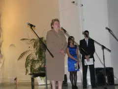 Для вручения студенческих билетов и зачётных книжек на сцену поднялись: Быкова Наталья Николаевна - заместитель главы администрации города и Русанов Роман Юрьевич - депутат законодательного собрания Владимирской области. Также слова поздравления прозвучали от Карцевой Марины Евгеньевны - руководитель исполкома местного отделения Единой России; Пылёнкова Антона Васильевича - ген. директора строительной компании; Фролкина К.С. - руководителя отдела по молодёжной политике городской администрации.