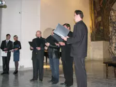 Финальным аккордом студенческого праздника стало выступление вокального квартета Святотроицкого храма, руководитель коллектива - Михаил Романович Воленков.