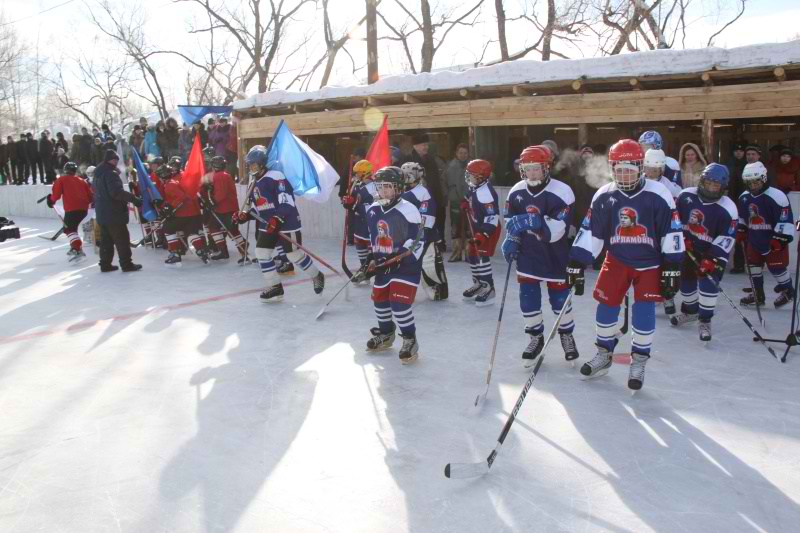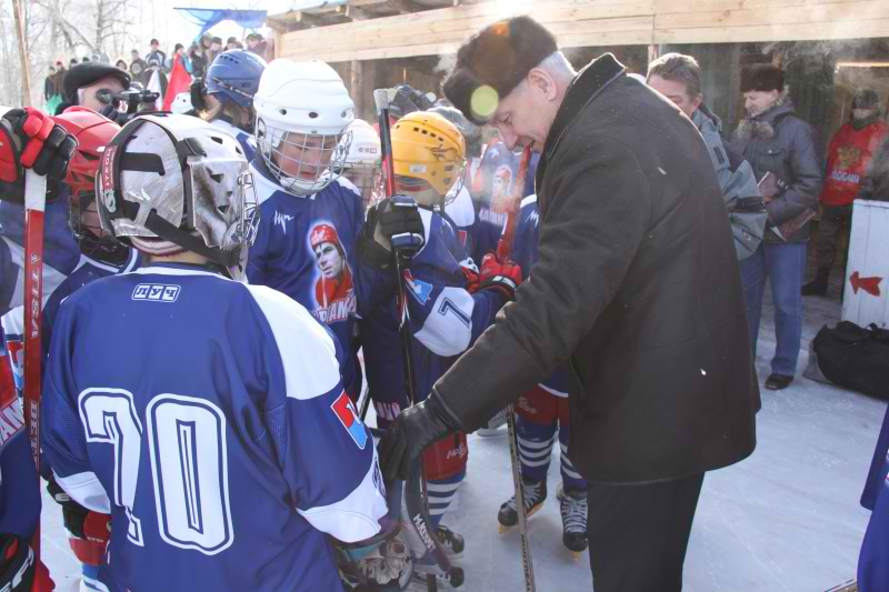 Торжественное открытие хоккейной площадки в посёлке Гусевском