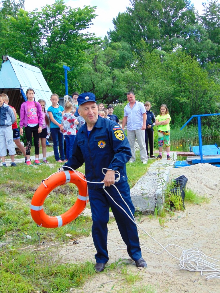 Ну и как же без мастер-класса от настоящих спасателей! Вячеслав Липаков – спасатель-водолаз – продемонстрировал правильное использование спасательного круга при оказании помощи терпящим бедствие на воде. Мальчишки и девчонки с радостью вошли в образ спасателя, и под чутким руководством наставника, раз за разом проводили имповизированную спасательную операцию.