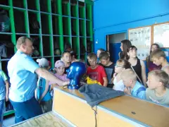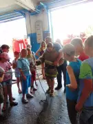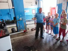 Увлекательная экскурсия началась в учебном классе, где ребята вместе с сотрудниками МЧС поговорили о летних опасностях. В ходе беседы были затронуты вопросы не только способов дозвона в службу спасения, пожарной безопасности и безопасности на воде, но и об опасности прогулок по заброшенным зданиям. Затем ребята узнали когда и как на территории Гусь-Хрустального района появились первые огнеборцы, как раньше пожарные связывались с диспетчером, работая на пожаре, какое обмундирование и вооружение было у гусевских пожарных.