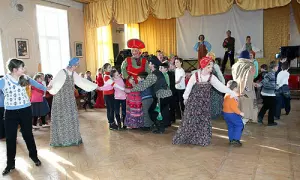 Яркой и незабываемой была встреча Масленицы в детской школе искусств 28 февраля. Помогли ощутить весёлый характер, полюбоваться ярким колоритом русского народного гуляния дорогие гости из Владимира. Это – фольклорный театр «Разгуляй» (худ. руководитель С. Тарасов). Звучали русские народные песни и инструменты; как из рога изобилия сыпались шутки-прибаутки, которые «заводили» зрителей, вовлекали их в шумные, забавные игры и хороводы. В них активно, с большим удовольствием участвовали ученики школы. Повеселили всех дородная барыня, щупленький, лукавый старичок, лошадь-плясунья, пекари блинов. Все персонажи фольклорного театра были одеты в многокрасочные народные костюмы. Это была настоящая Масленица. Здравствуй, весёлая обжорка!
