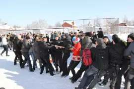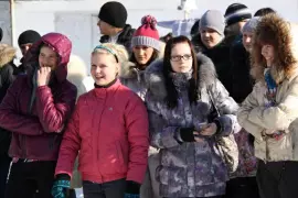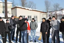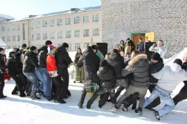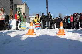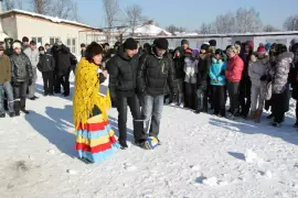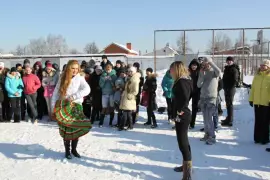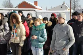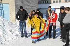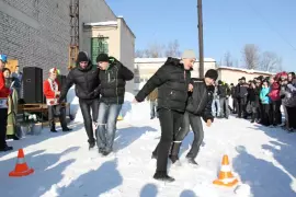 Ряженые и скоморохи приветствовали всех собравшихся на спортивной площадке колледжа. Ведущие рассказали об истории праздника и о том, с какими традициями связан каждый день Масленицы. Много сюрпризов было подготовлено для ребят. Началось всё с весёлых игр. С каким азартом участники перетягивали канат, бегали в мешках, кидали мётла и снежки! В этих конкурсах особенно активно участвовали парни из групп Ма 1-1, А 1-1, А 1-2. Много весёлых потешных шуток, прибауток, песен, пословиц и поговорок об этих днях узнали студенты от девушек из групп Б 1-1 и Т 1-1.